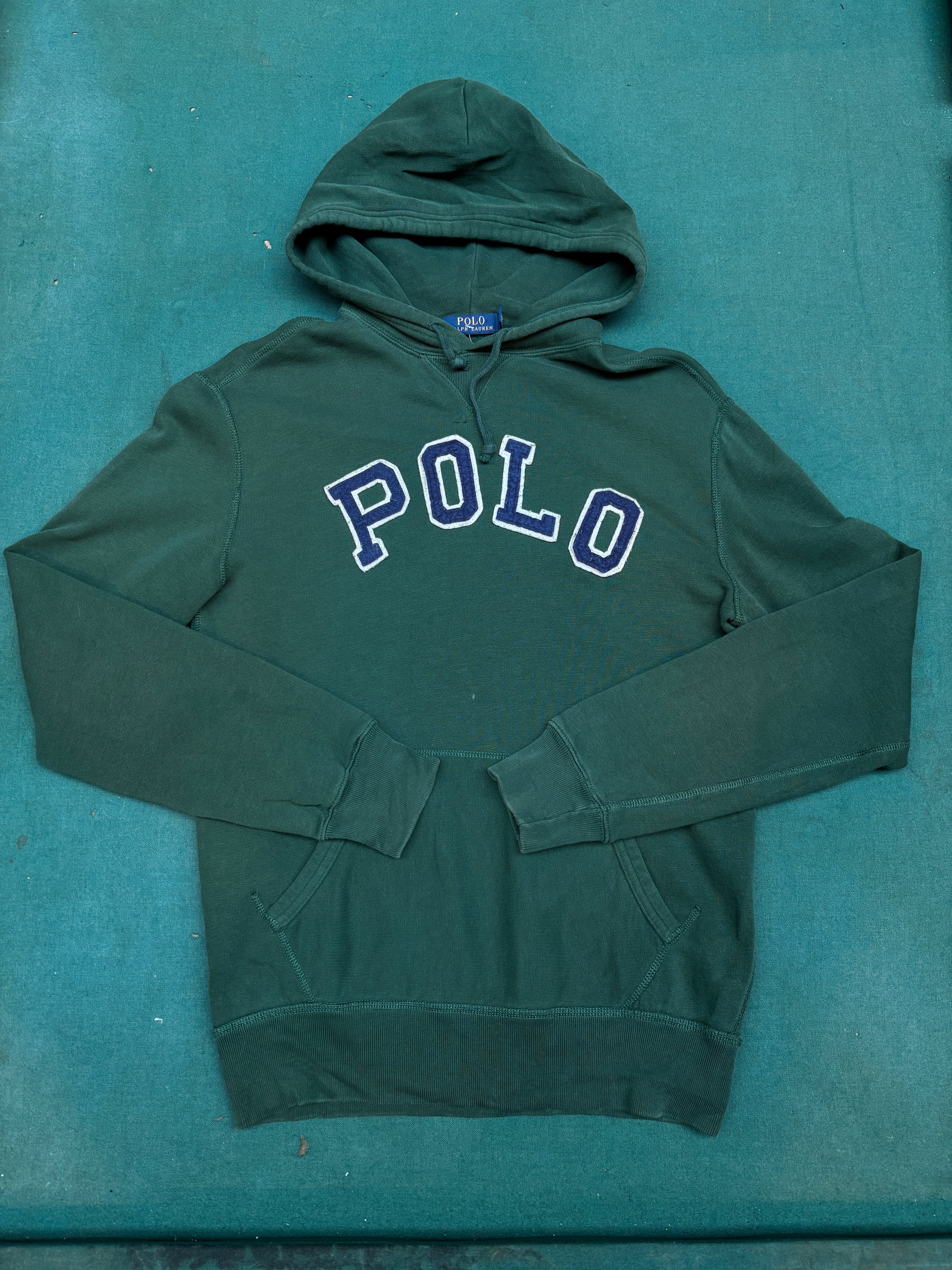 Vintage Polo Ralph Lauren Green Hoodie Sweatshirt with Embroidered Polo Logo Men M