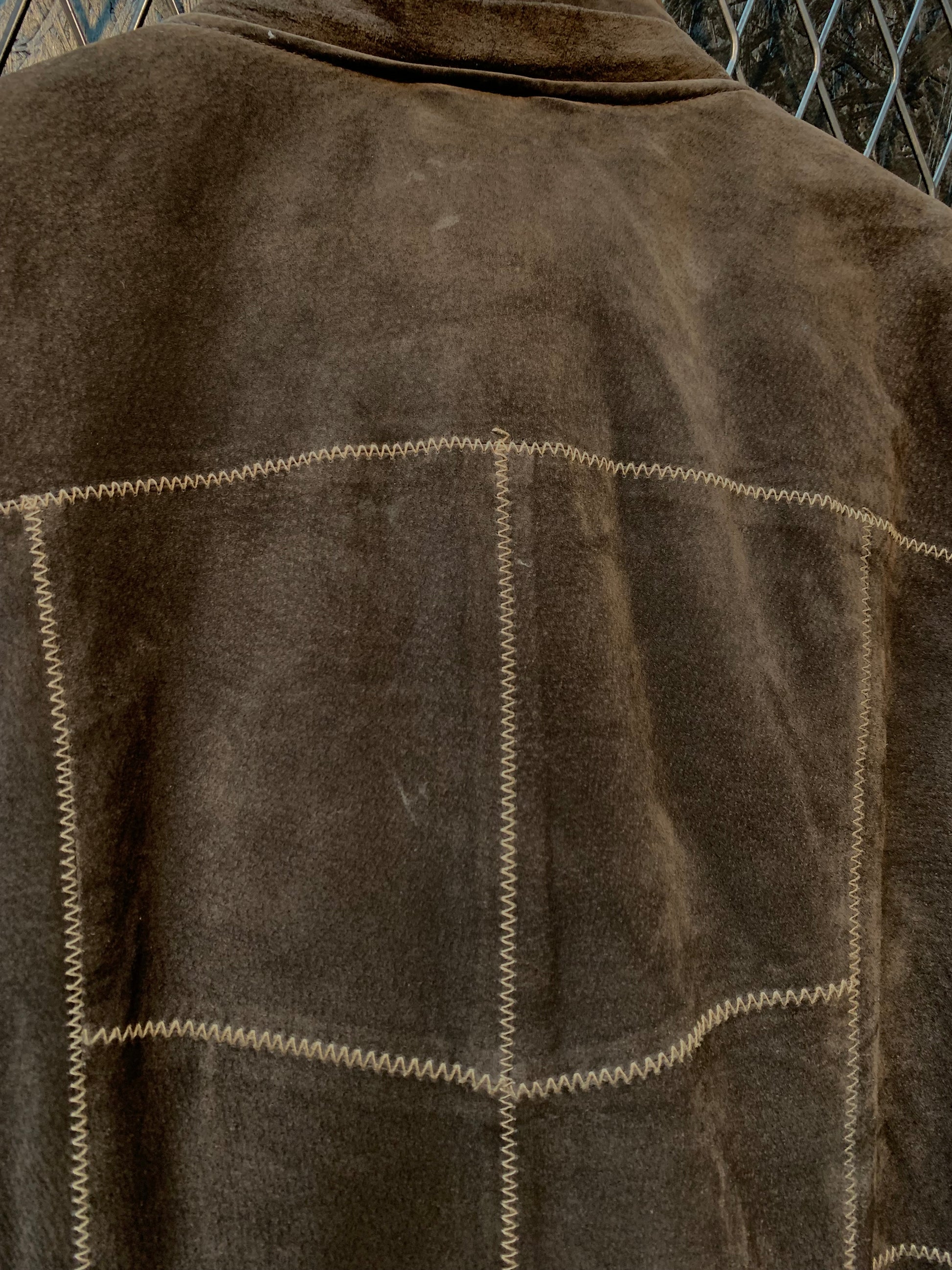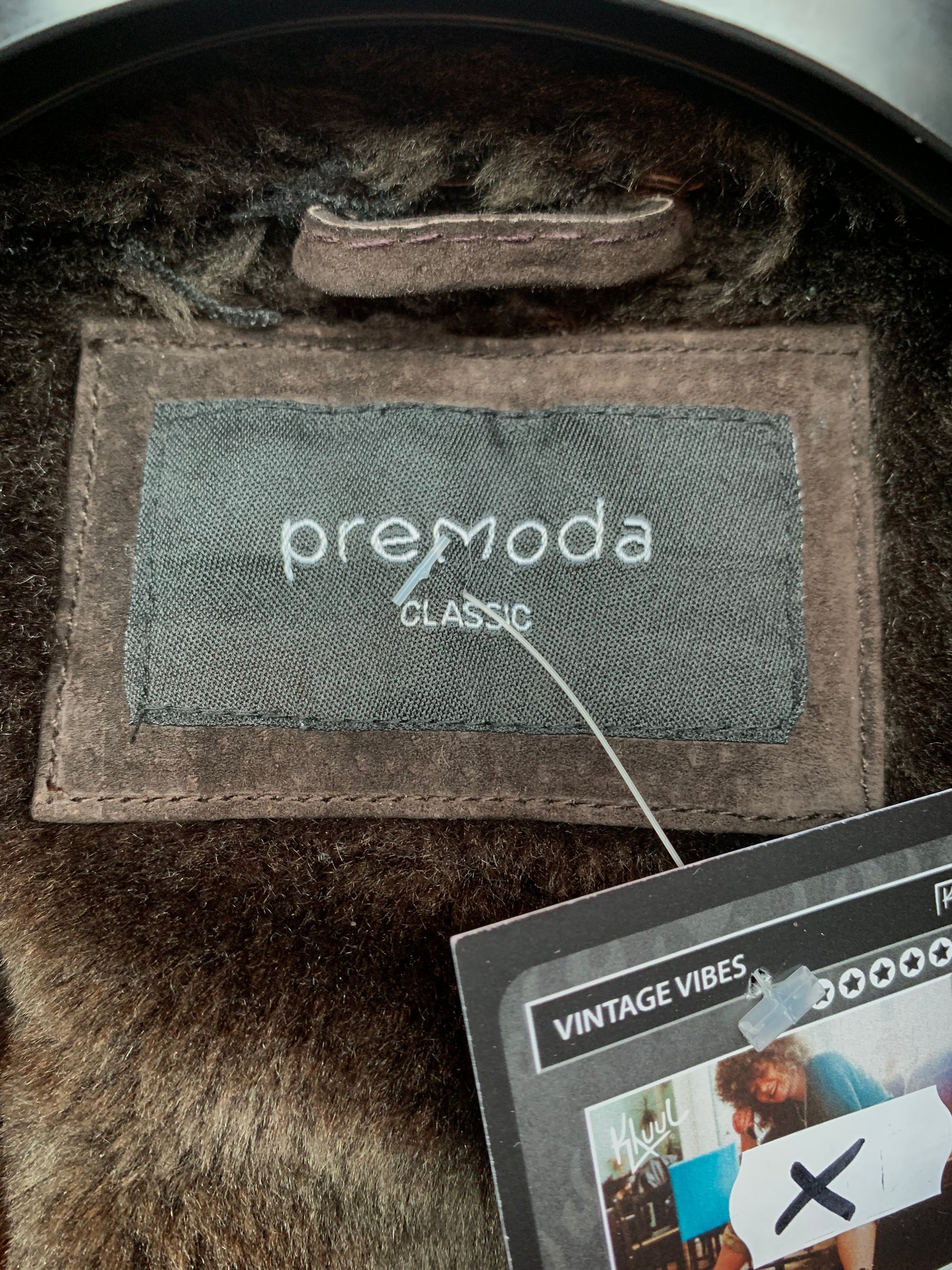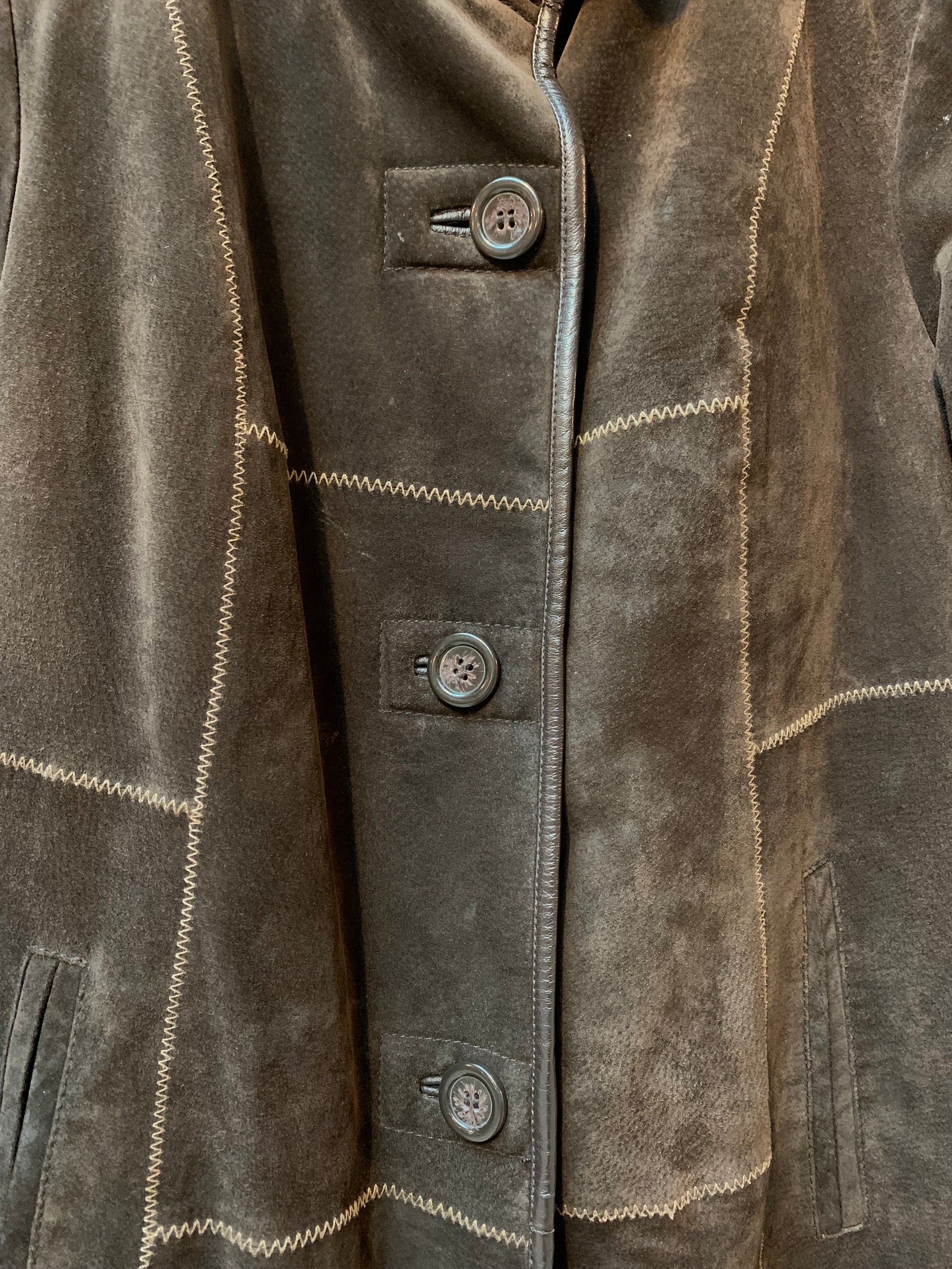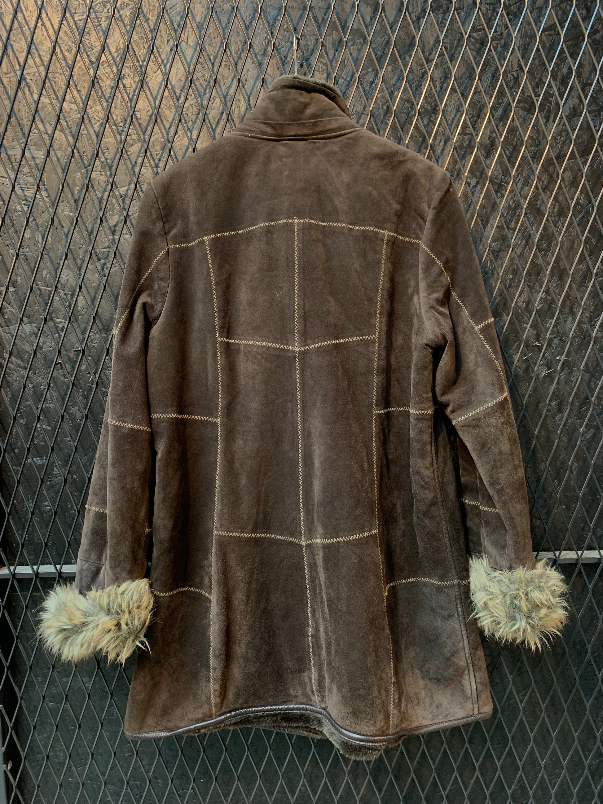 Premoda Vintage Brown Faux Suede Coat Women’s L Long Buttoned Jacket Cozy Fuzzy Cuffs Lined Winter Outerwear Classic Style