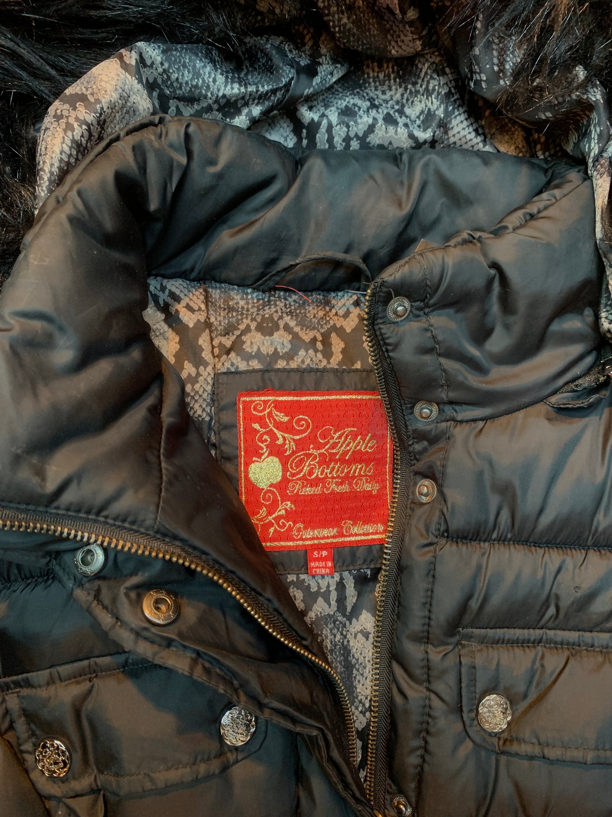 Y2K Women's Black Beaded Apple Bottoms Winter Coat
