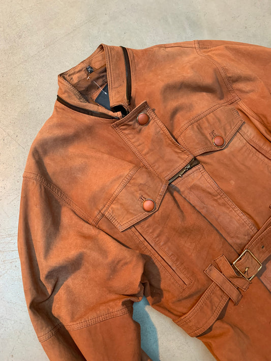 Women's Vintage Belted Brown Jacket with Stand Collar
