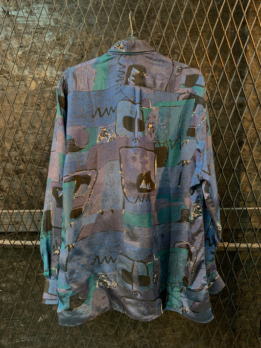 Christian Dior Vintage Abstract Print Silk Long Sleeve Shirt