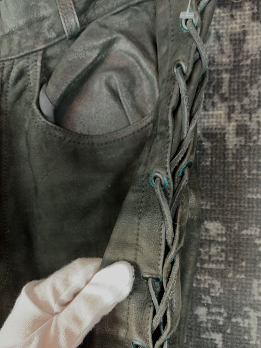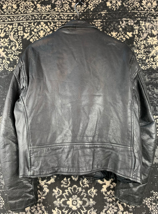Men's Vintage Black Leather Coat with Brown Fur Collar