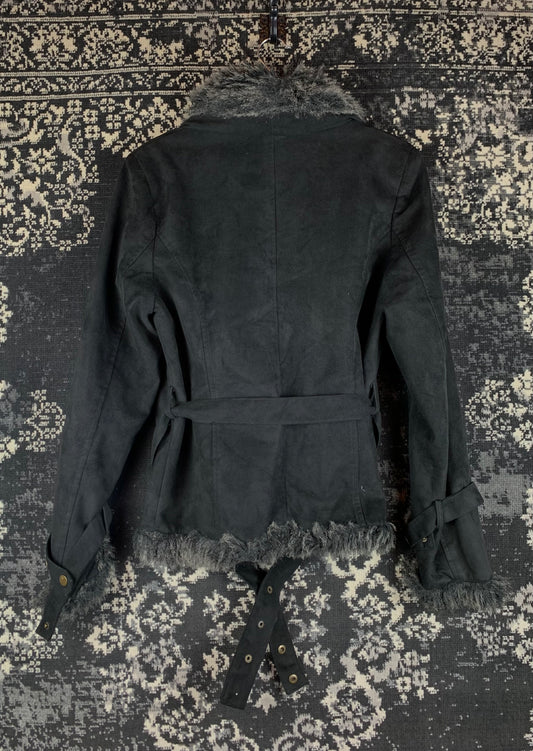 Women's Y2K Black Faux Suede Coat