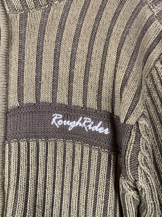 Men's Y2K Rough Rider Khaki Ribbed Zip Sweater