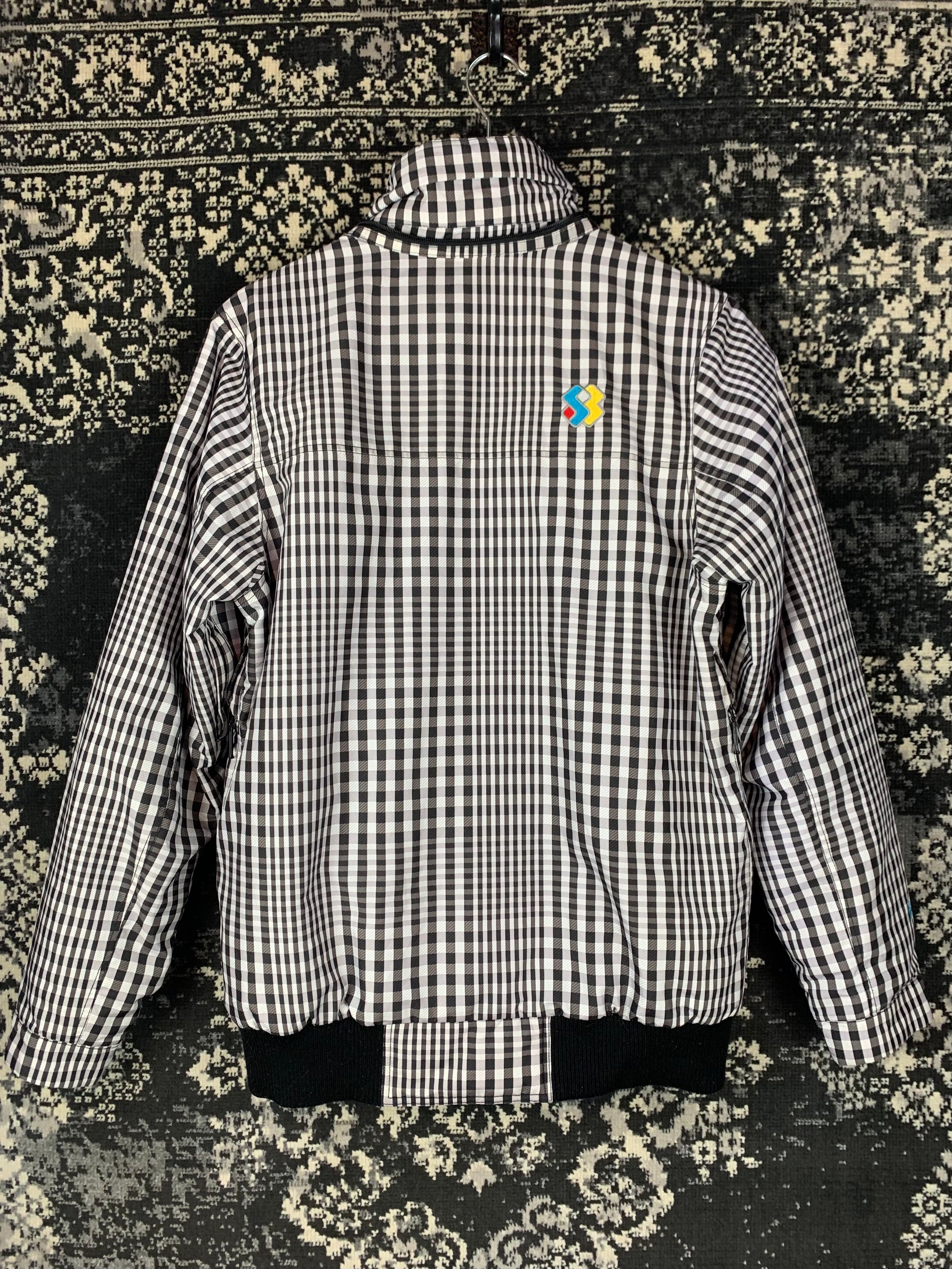Mens Y2K Vintage Black and White Checkered Zip-Up Bomber Jacket