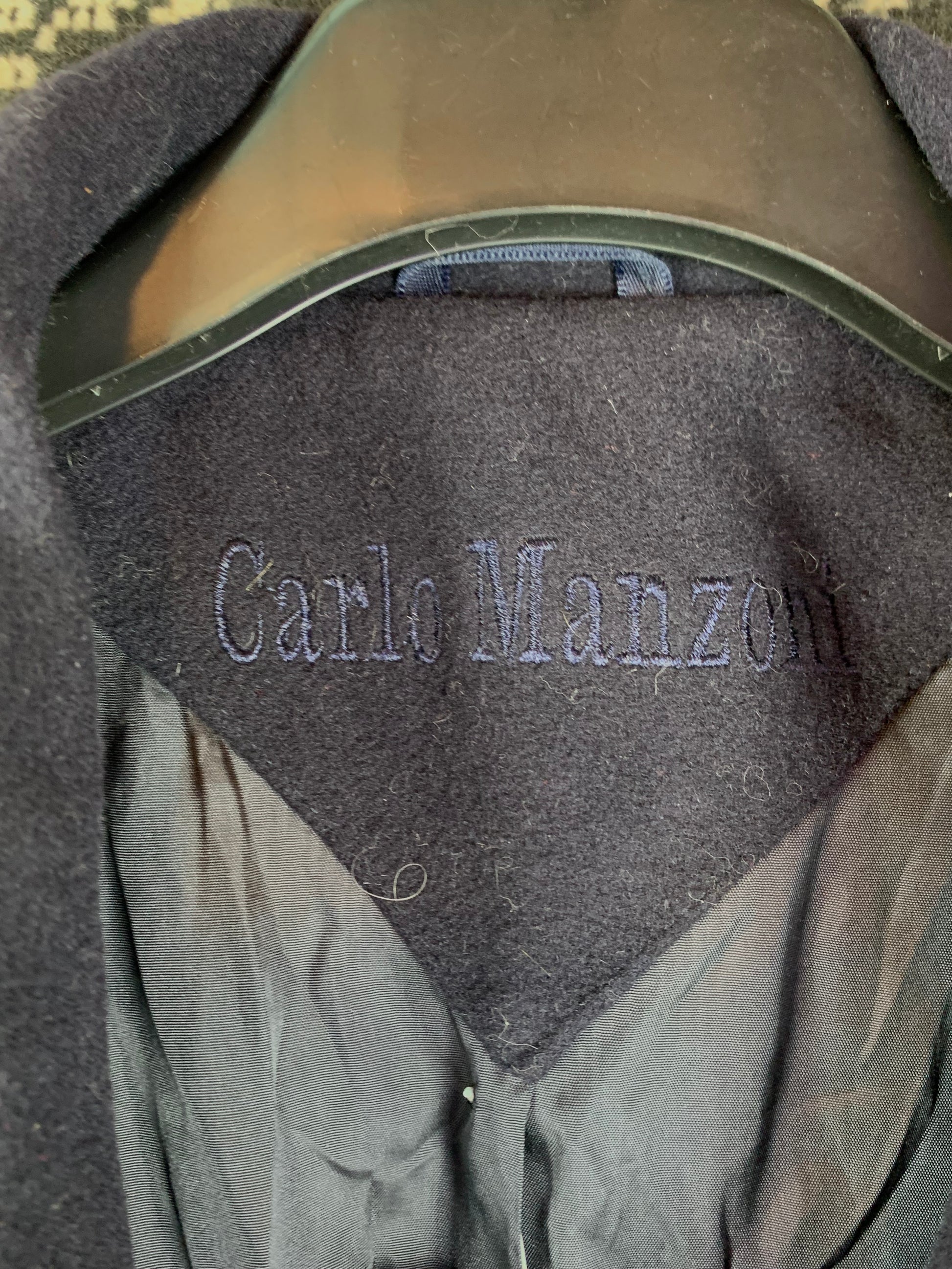 Men's Vintage Carlo Manzoni Long Dark Blue Wool Coat