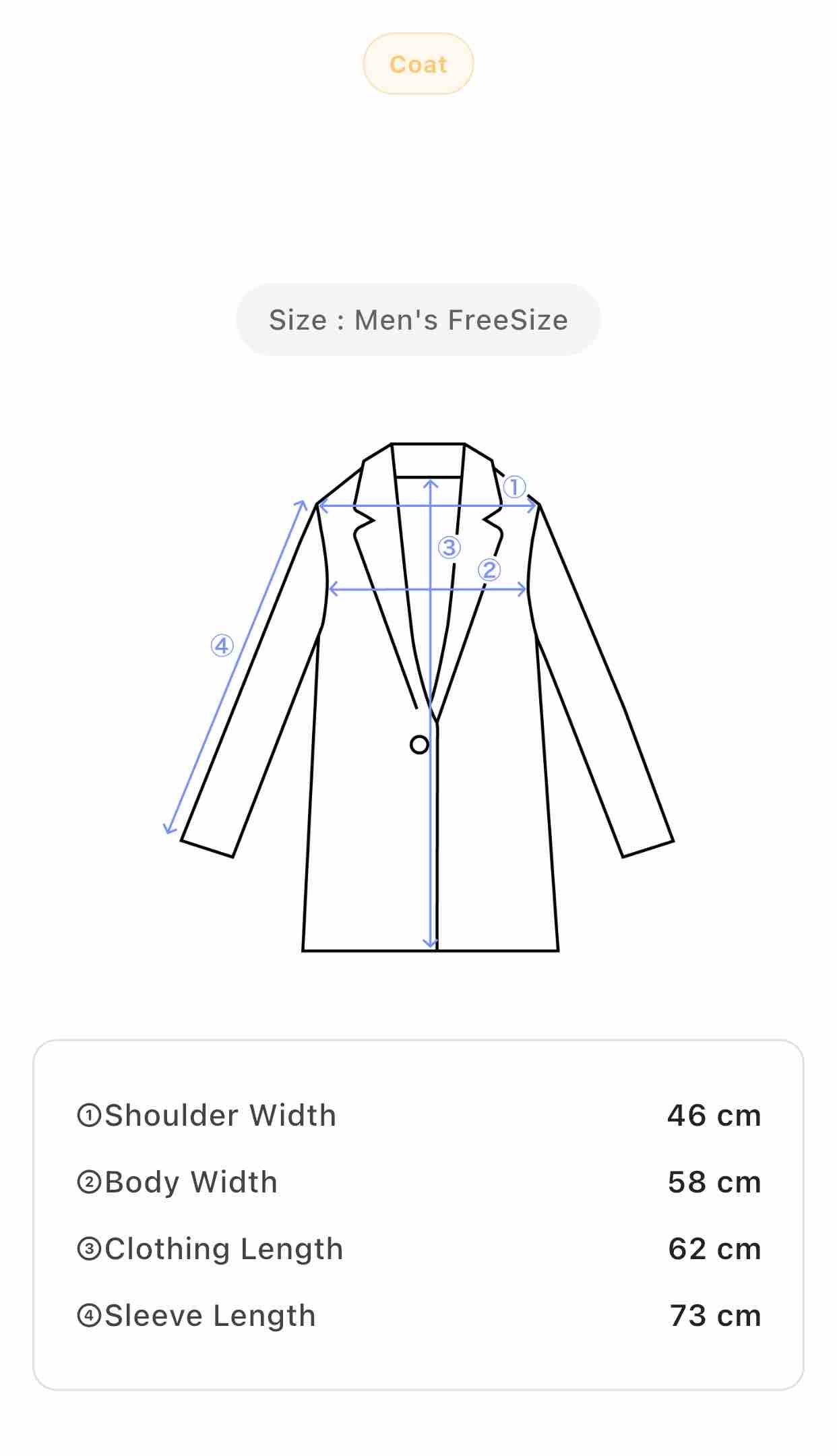 Size: Men's XL Shoulder 46 cm, Body Width 58 cm, Length 62 cm, Sleeve 73 cm