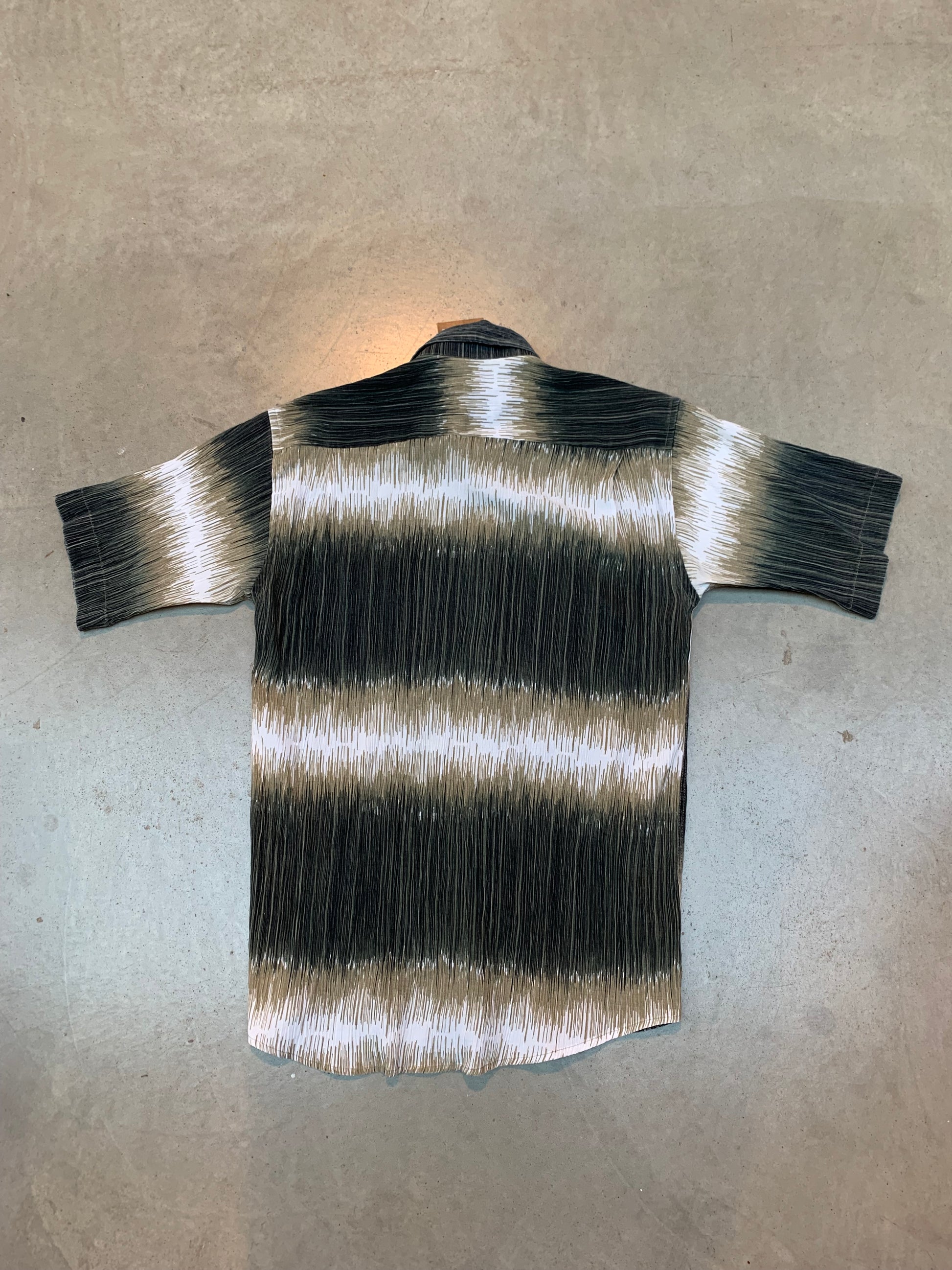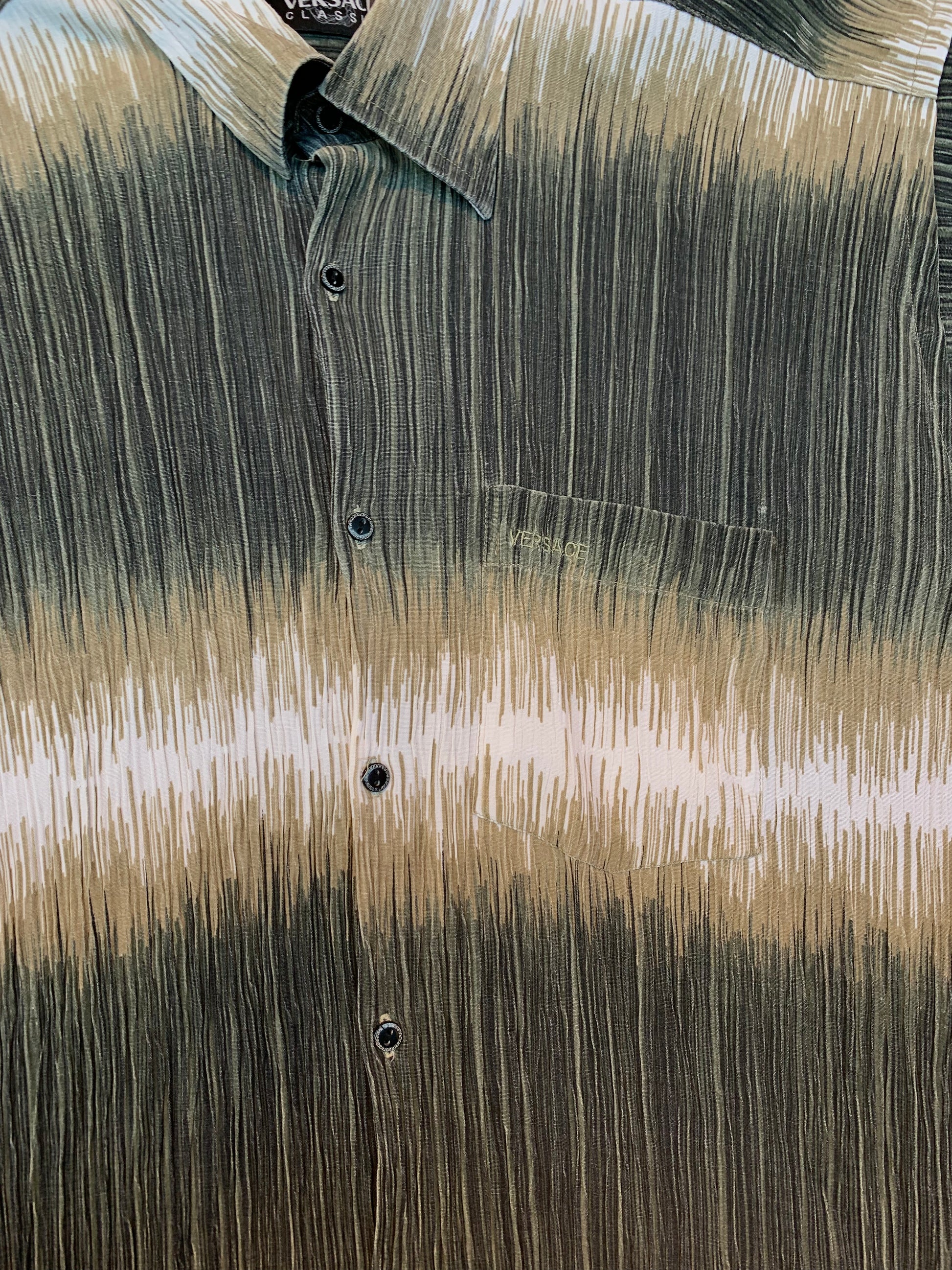 Versace Classic Mens L Short Sleeve Shirt Green Beige Ombre Pattern Button Up Designer Luxury Top Retro Collared Dressy