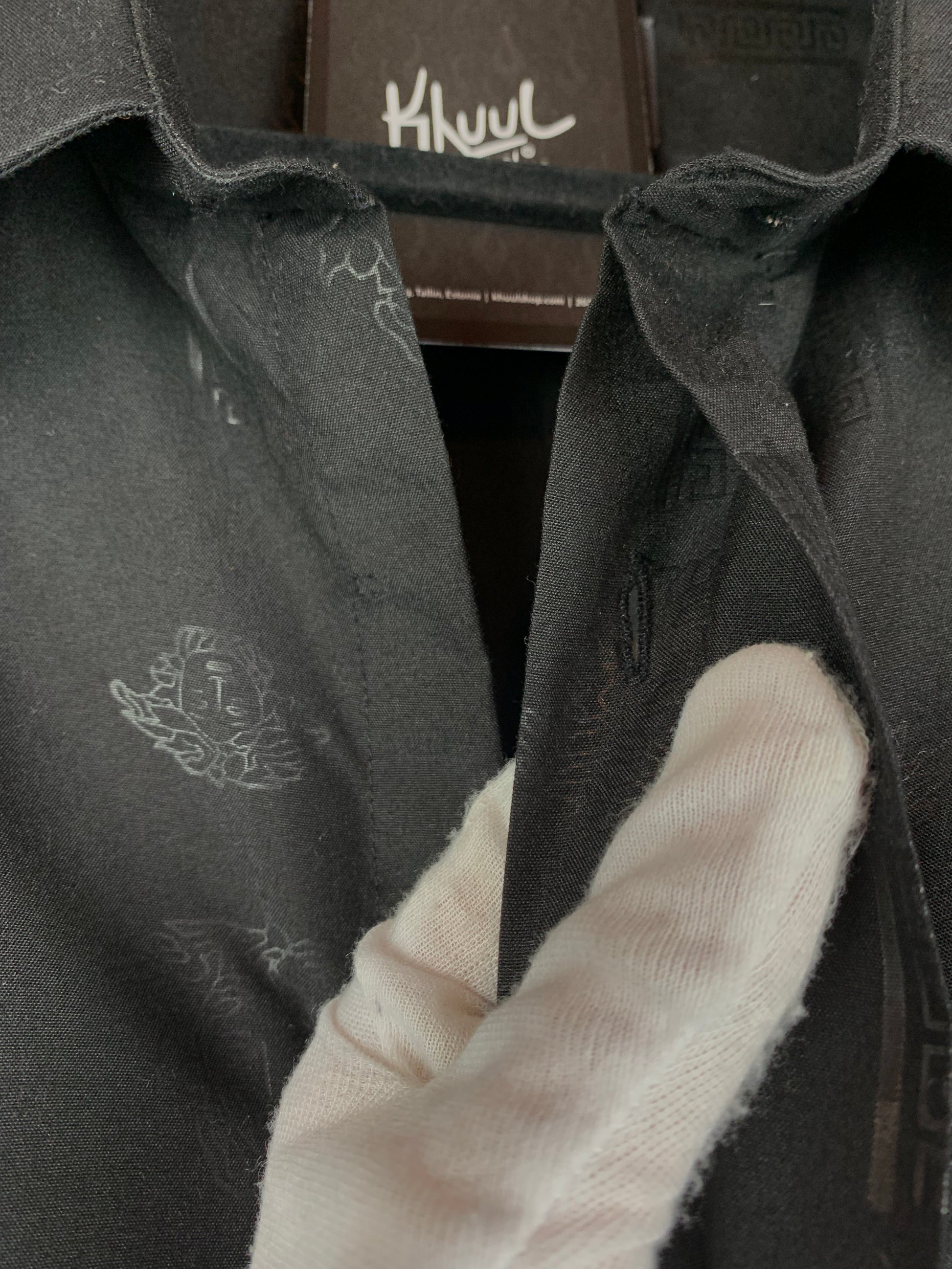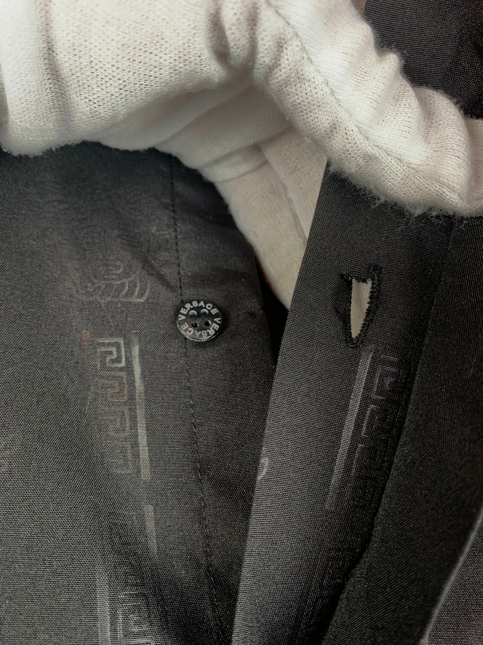 Vintage Versace Jeans Couture Black Button Up Shirt with Monogram Medusa Print and Branded Buttons