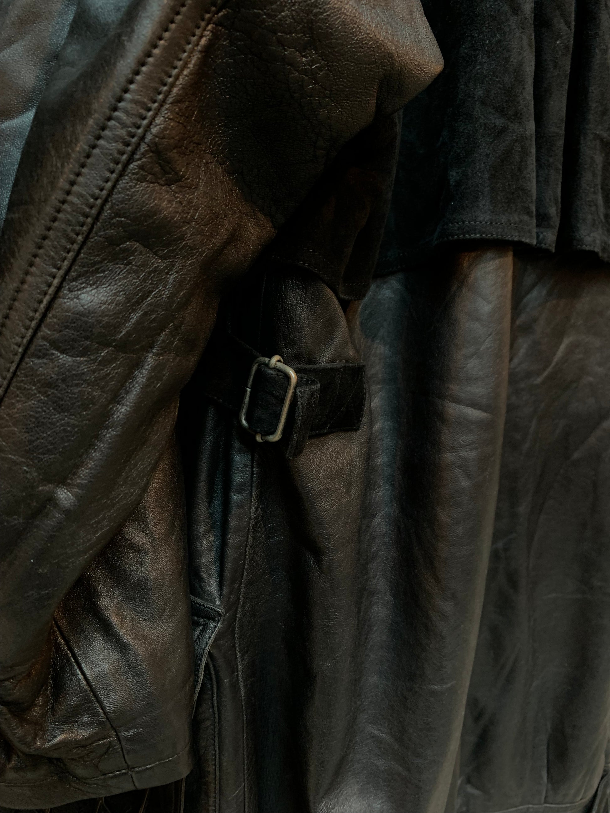 Women's Vintage Cesare Piccini Black Leather Trench Coat