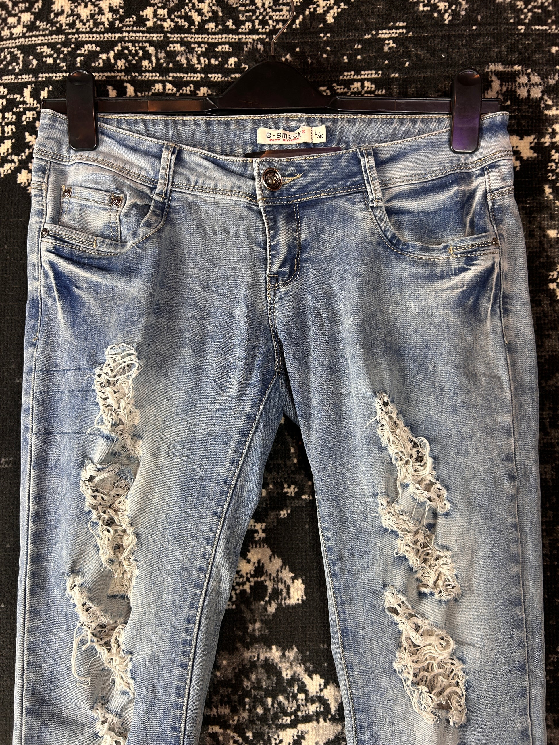 Y2K Women's Vintage Light Wash Skinny Jeans – Distressed Denim L Size Pants