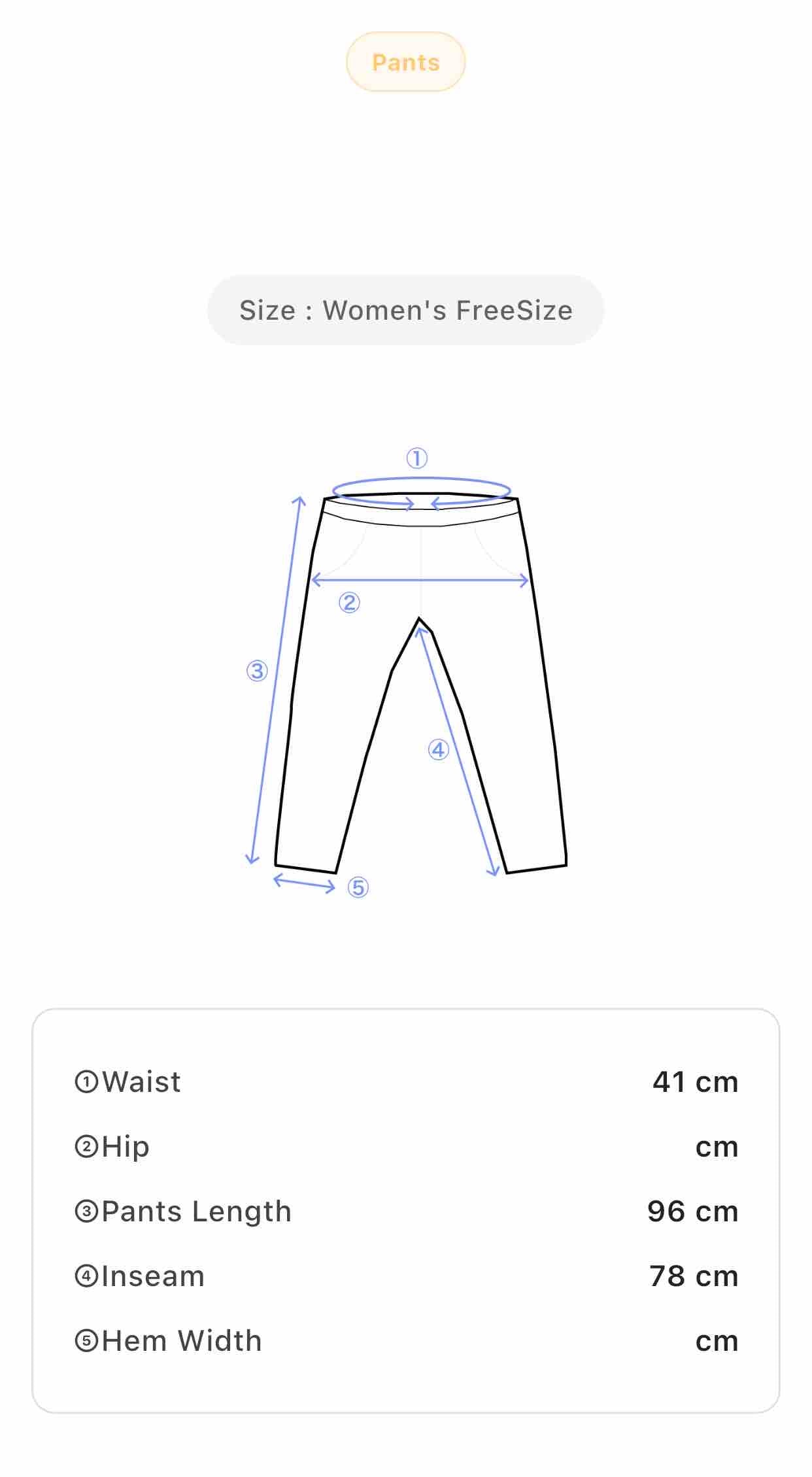 Size: Women's L waist 41 cm, pants length 96 cm, inseam 78 cm