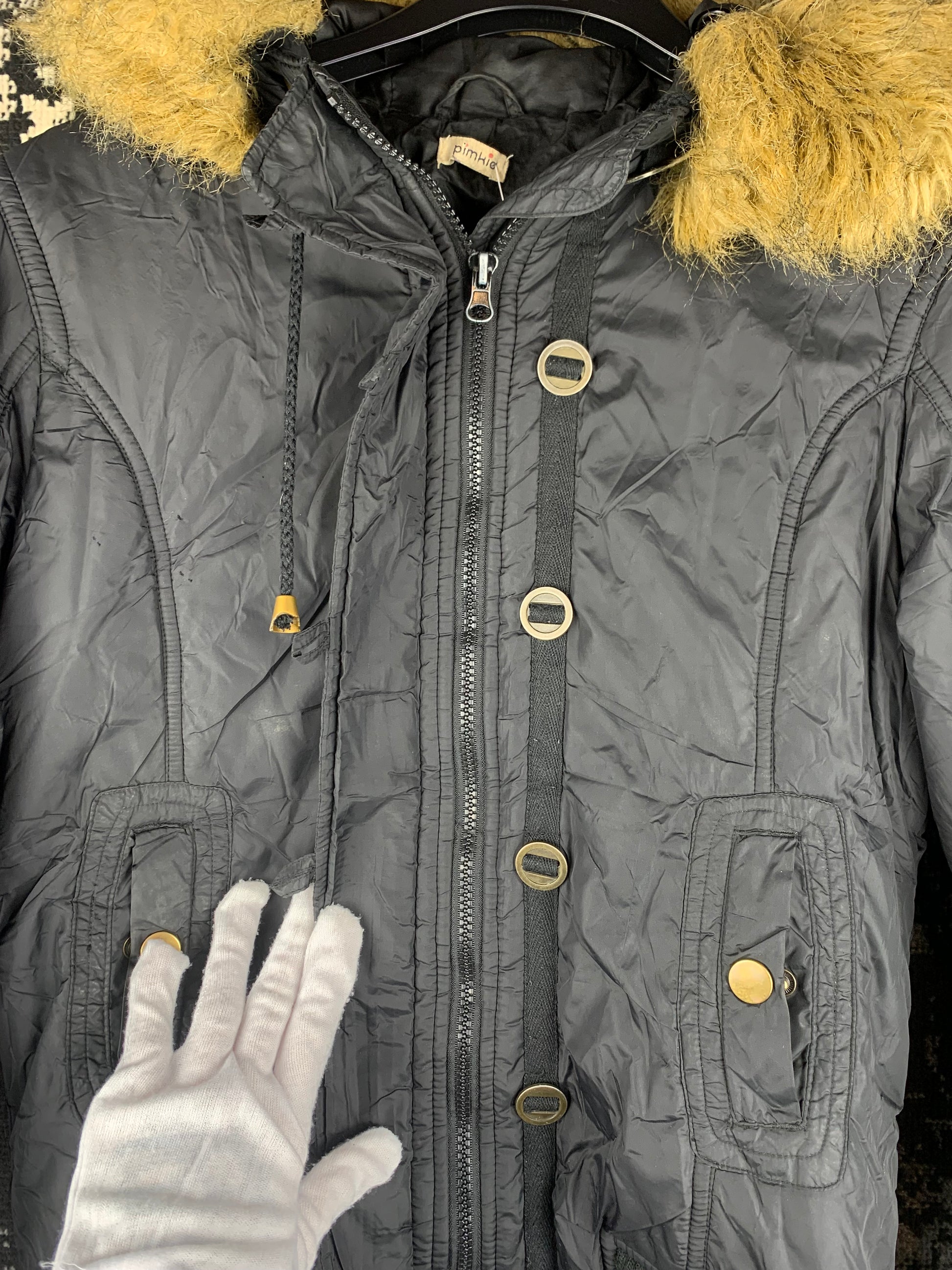 Women's Y2K Style Black Puffer Jacket with Faux Fur Trim – Short Bomber Style Winter Coat by Pimkie