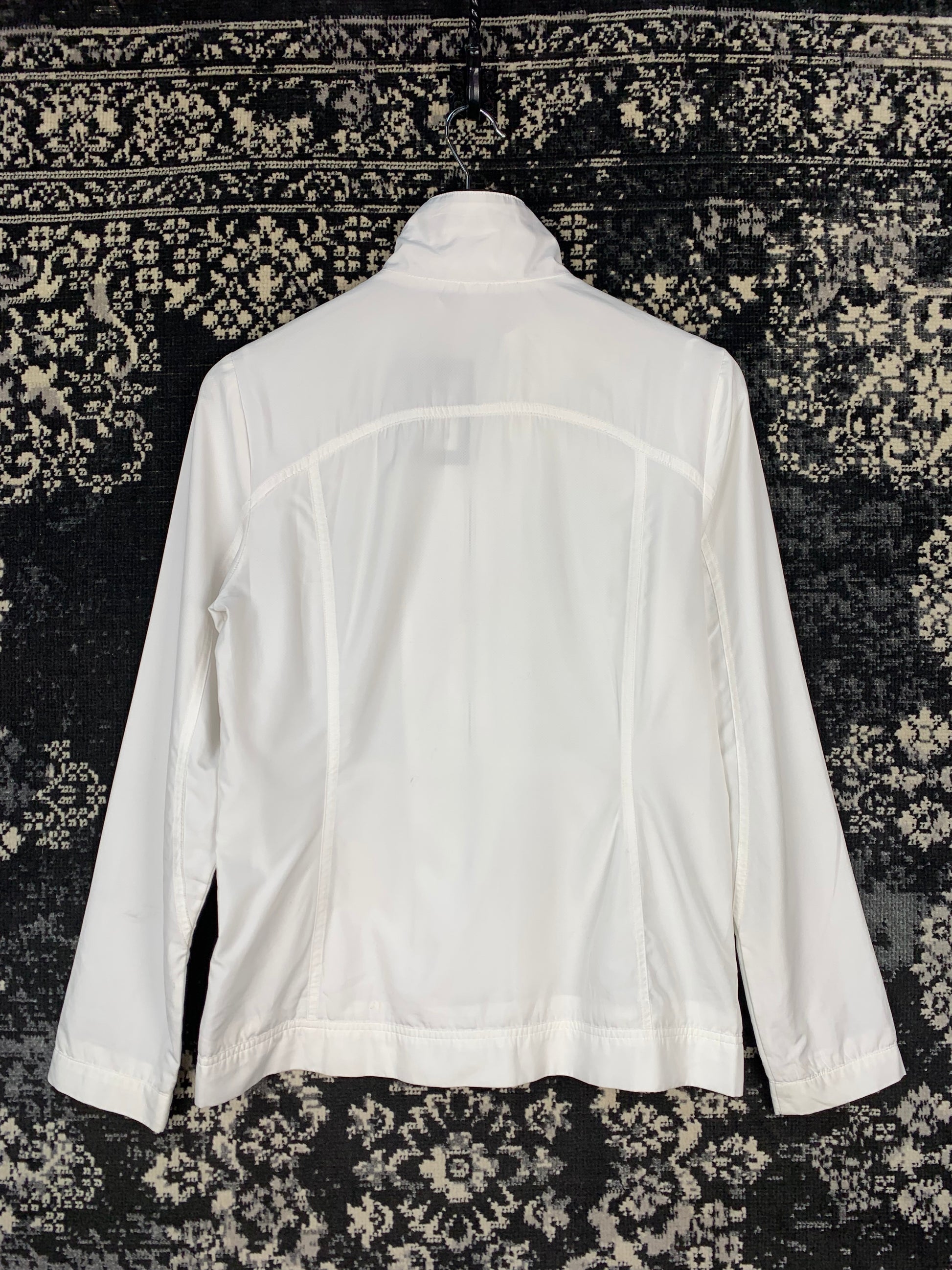 Y2K Women's White Adidas Track Jacket with Full Zip Front, Zip Pockets and Logo Detail - Size S Lightweight Sporty Retro Outerwear