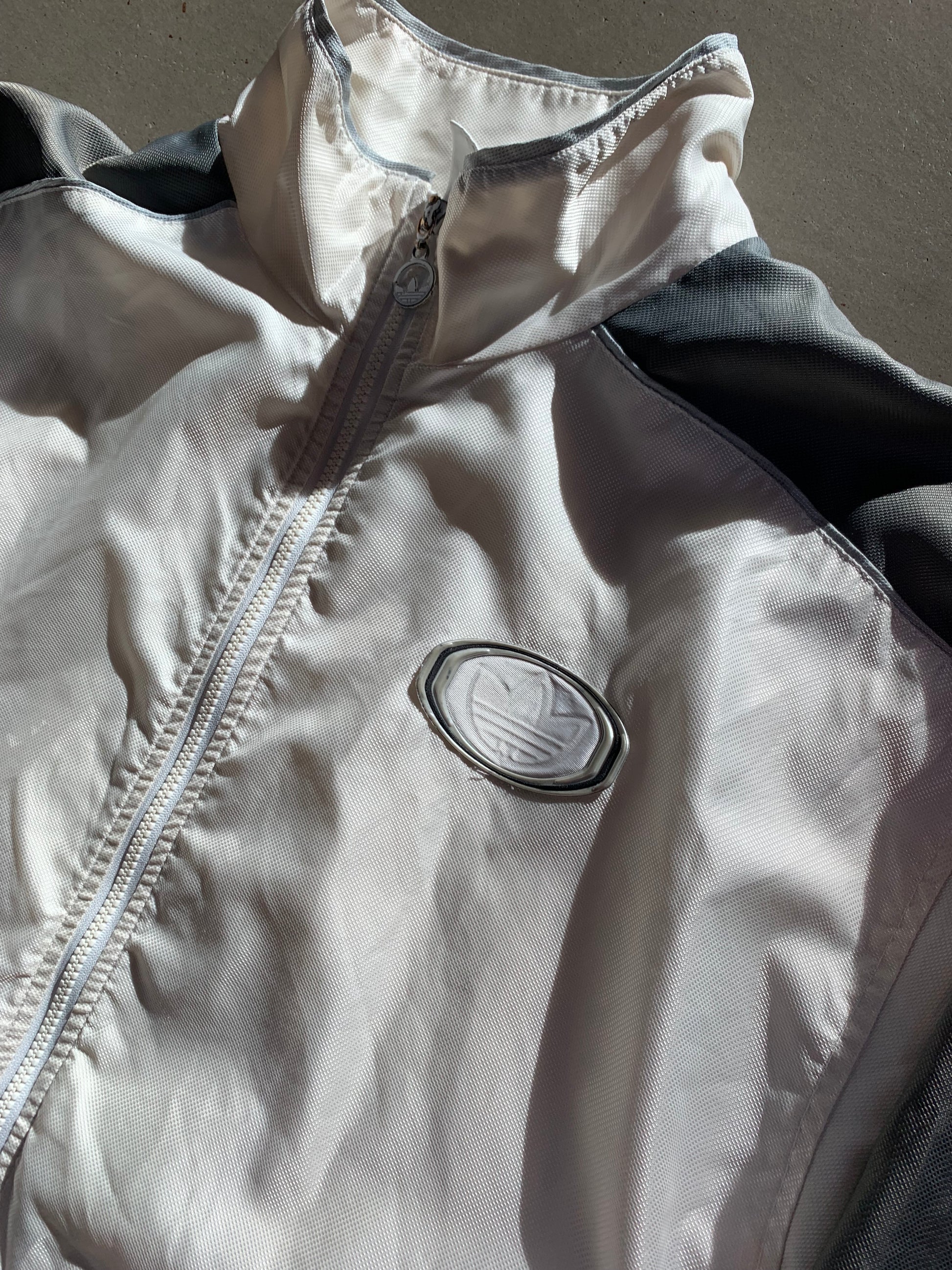 Adidas Vintage White And Black Full Zip Track Jacket With Classic Trefoil Logo