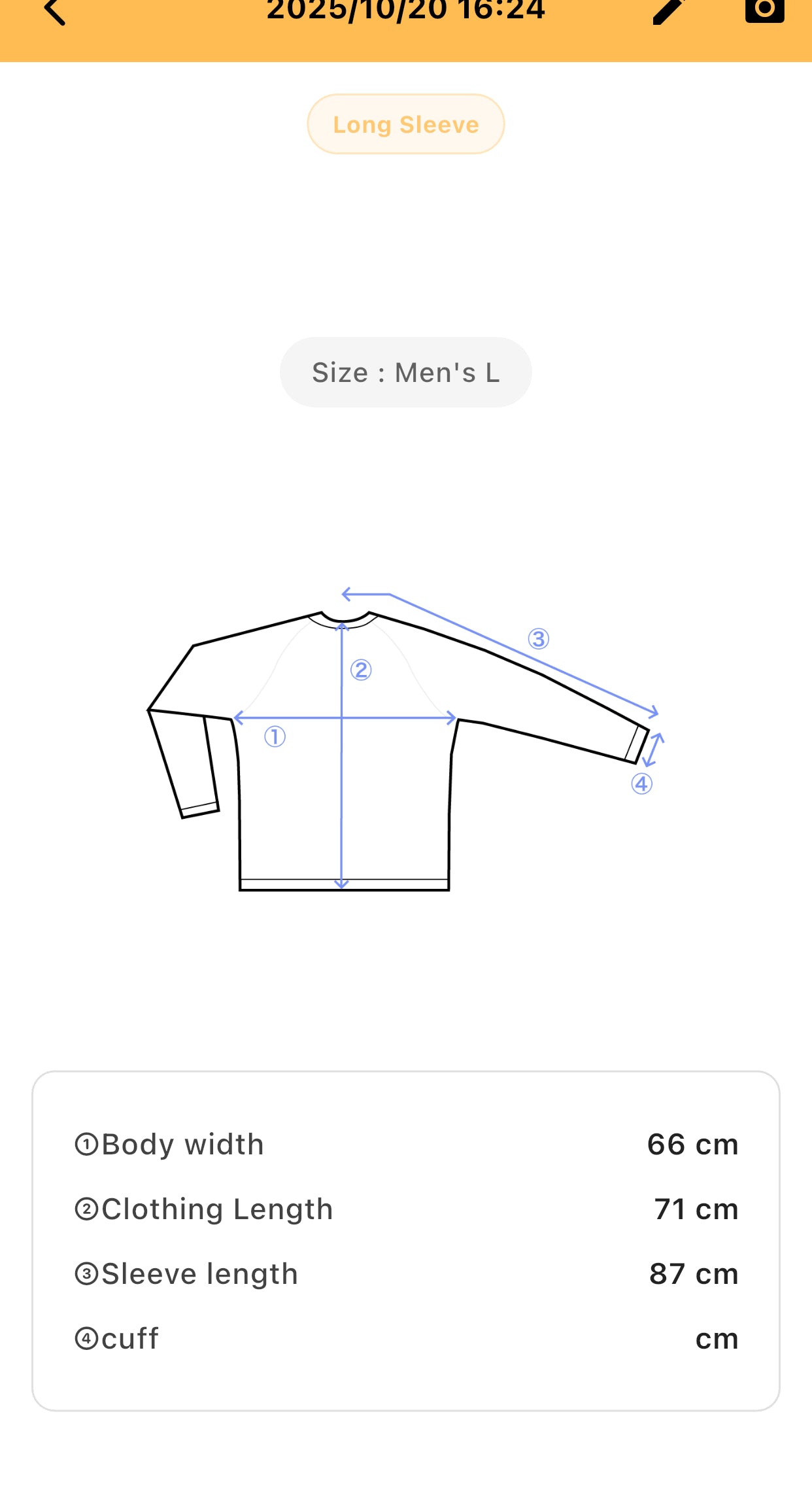 • Size: Men's L — Body Width: 66 cm, Clothing Length: 71 cm, Sleeve Length: 87 cm