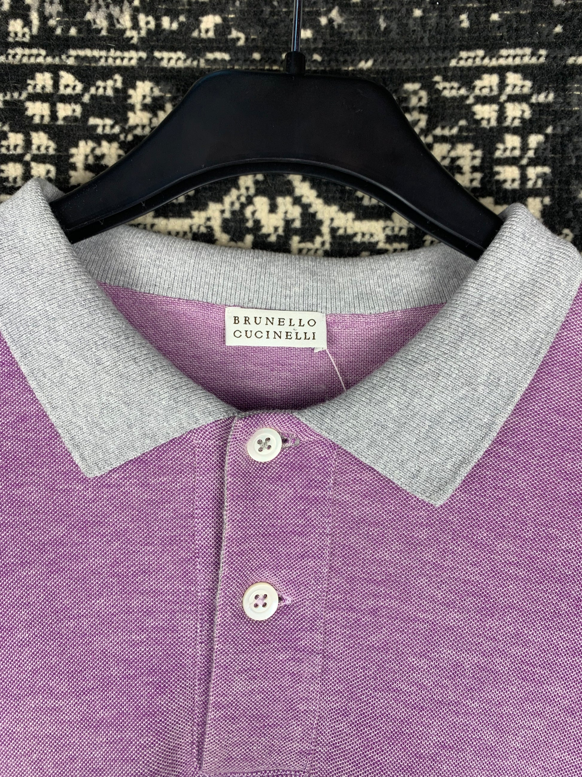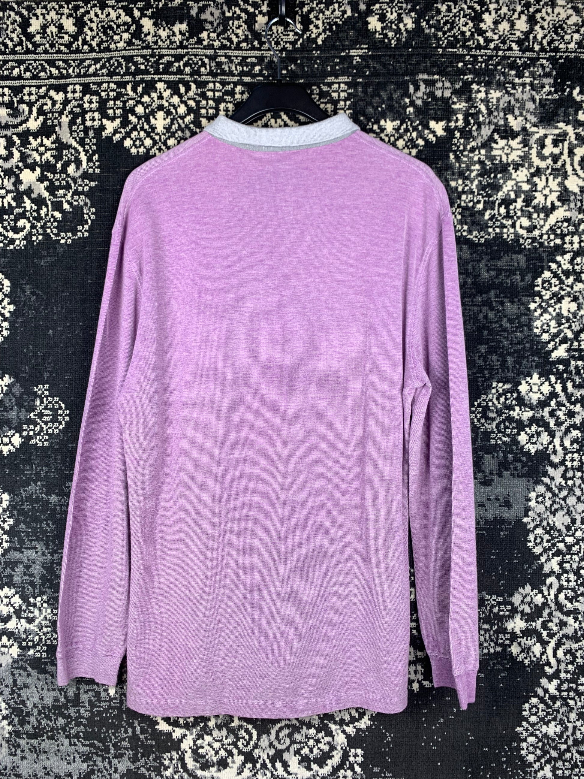 Brunello Cucinelli Men's Long Sleeve Polo Shirt – Two-Tone Lavender & Gray Classic Button-Up Collar – Timeless Luxury Casualwear – XL