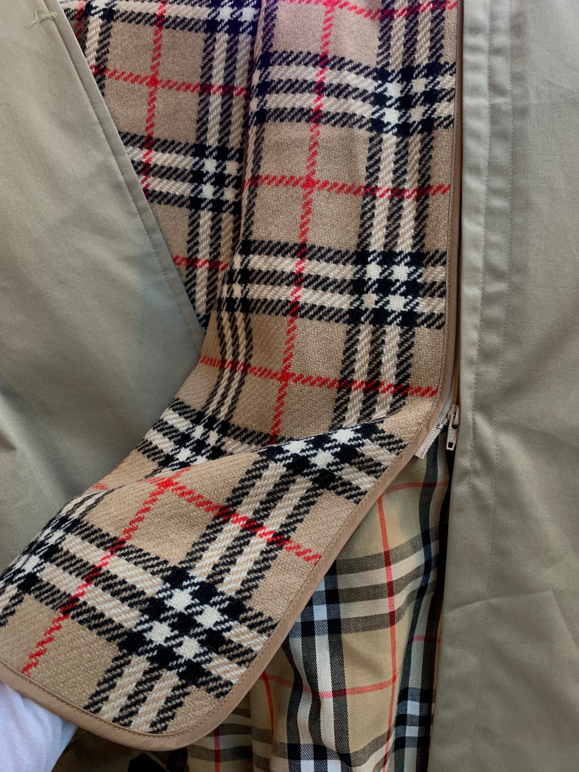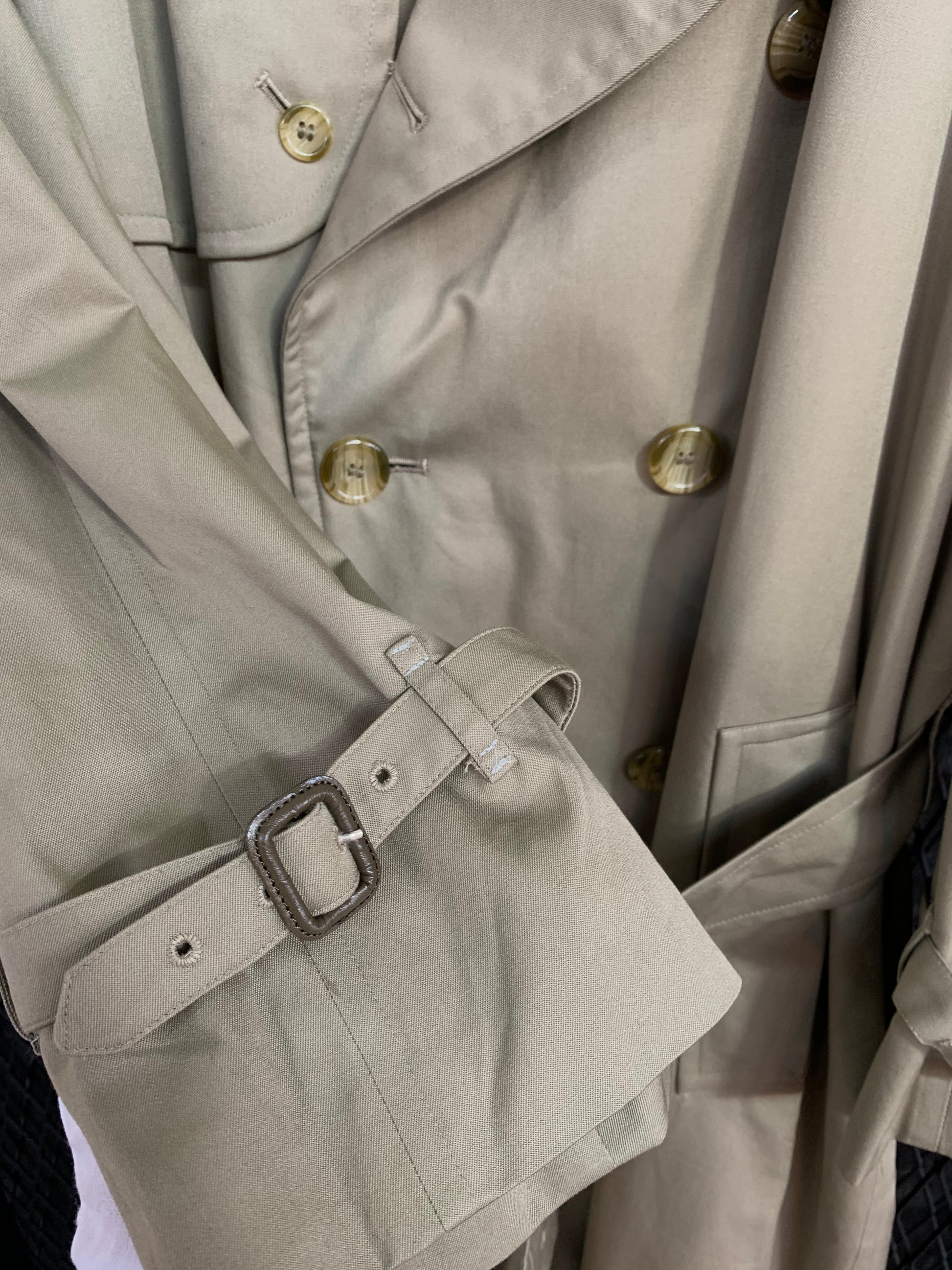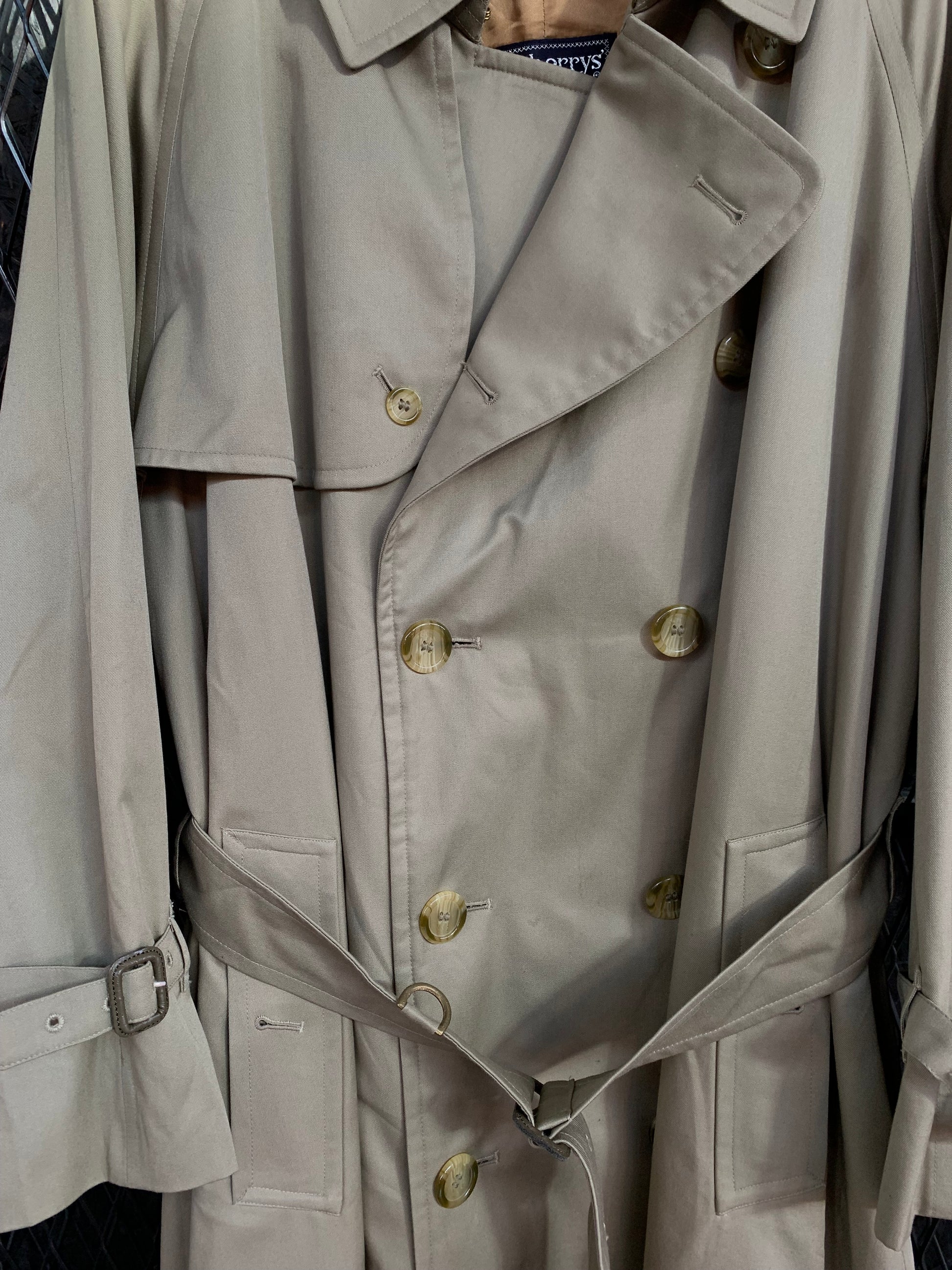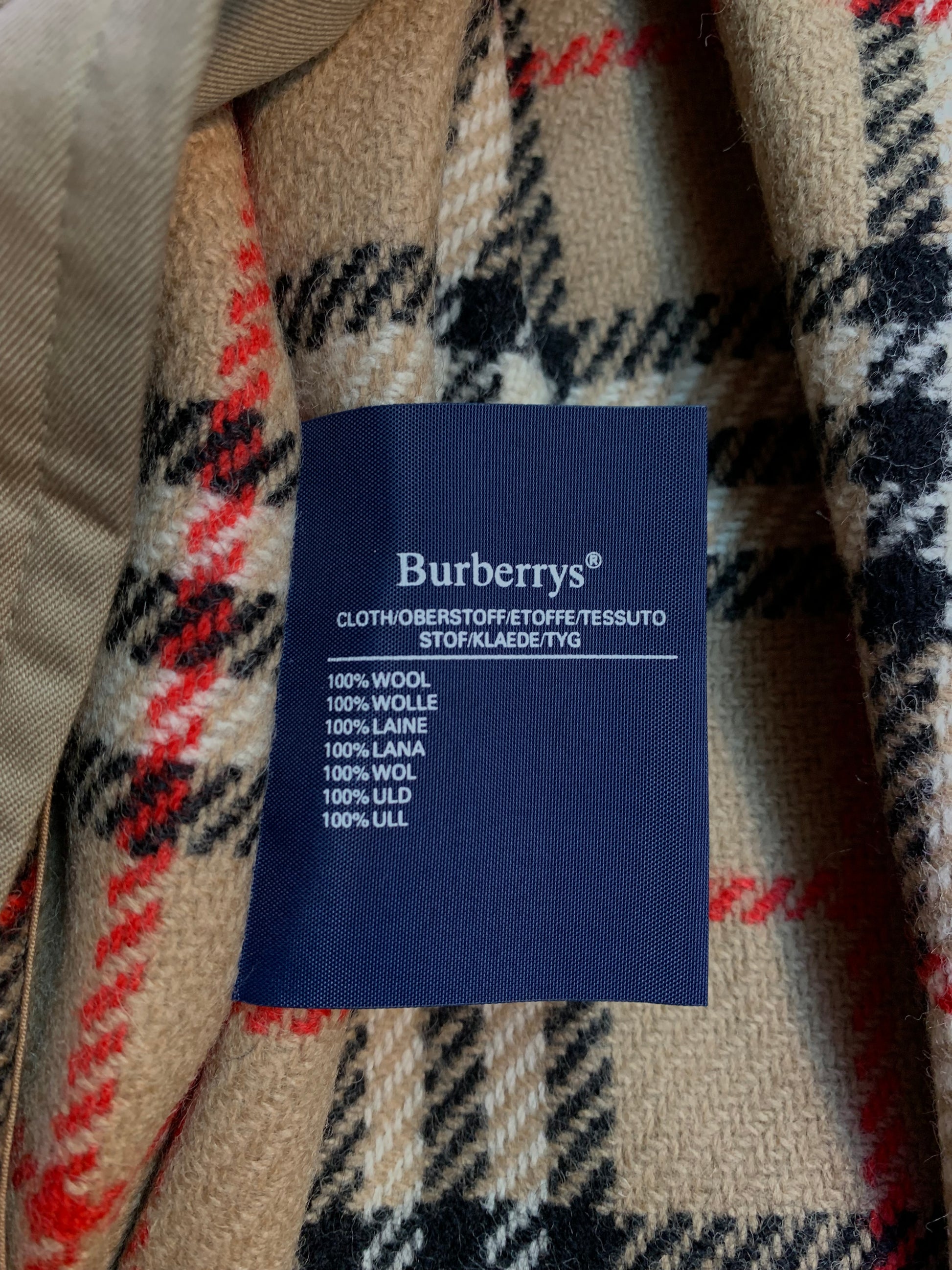 Vintage Burberrys Beige Long Trench Coat with Nova Check Wool Lining and Belted Waist - Double-Breasted Classic Made in England in Men's XL - Timeless Iconic British Outerwear for Layered Autumn Looks