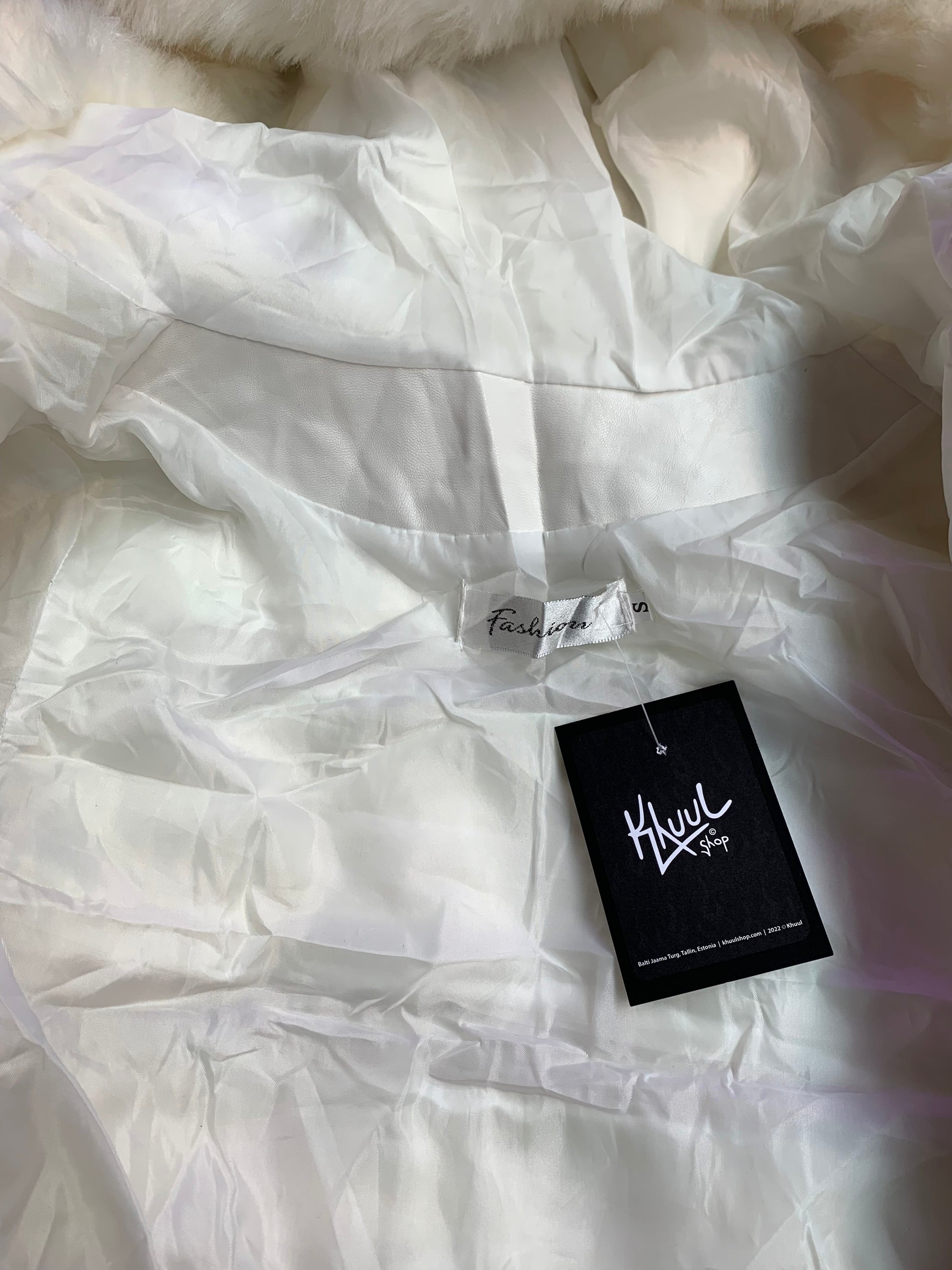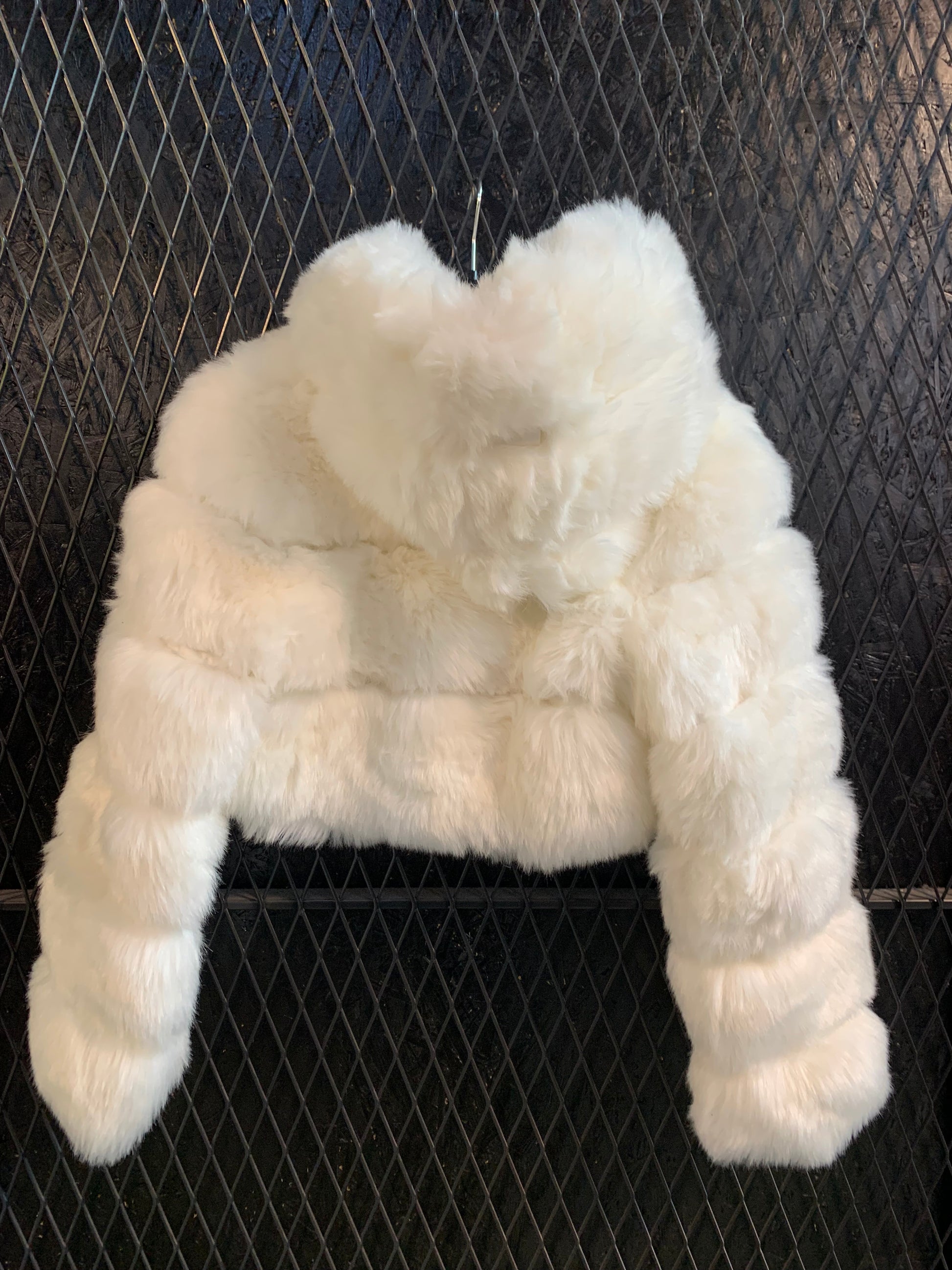 Fashion White Faux Fur Cropped Jacket with Front Zip Closure and Plush Panels - Short Fluffy Winter Coat for Women's S Trendy Outfits