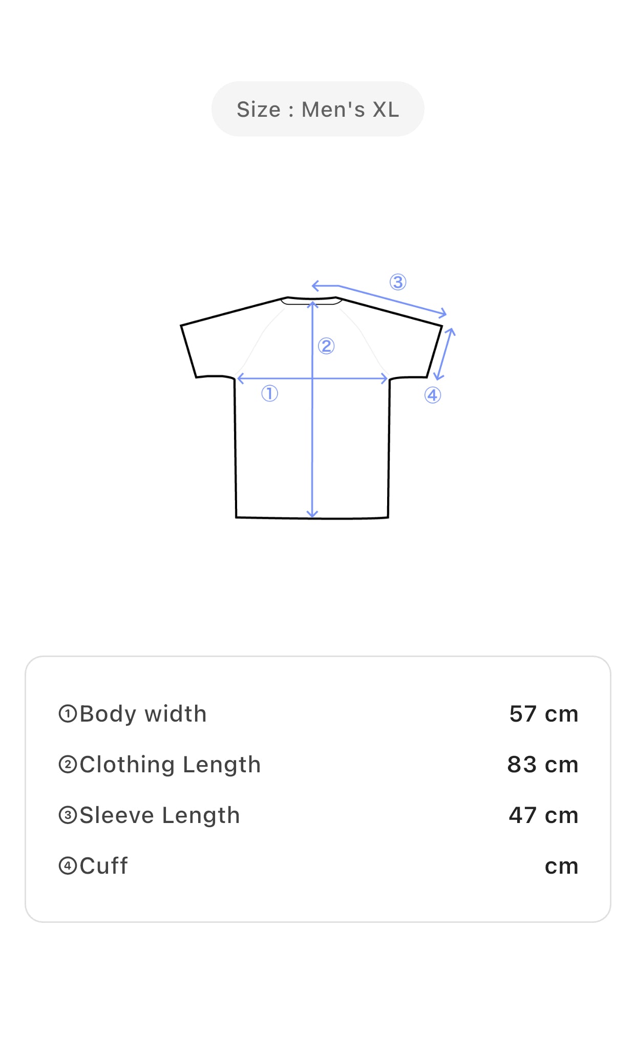Size: Men's XL, Body Width: 57 cm, Clothing Length: 83 cm, Sleeve Length: 47 cm