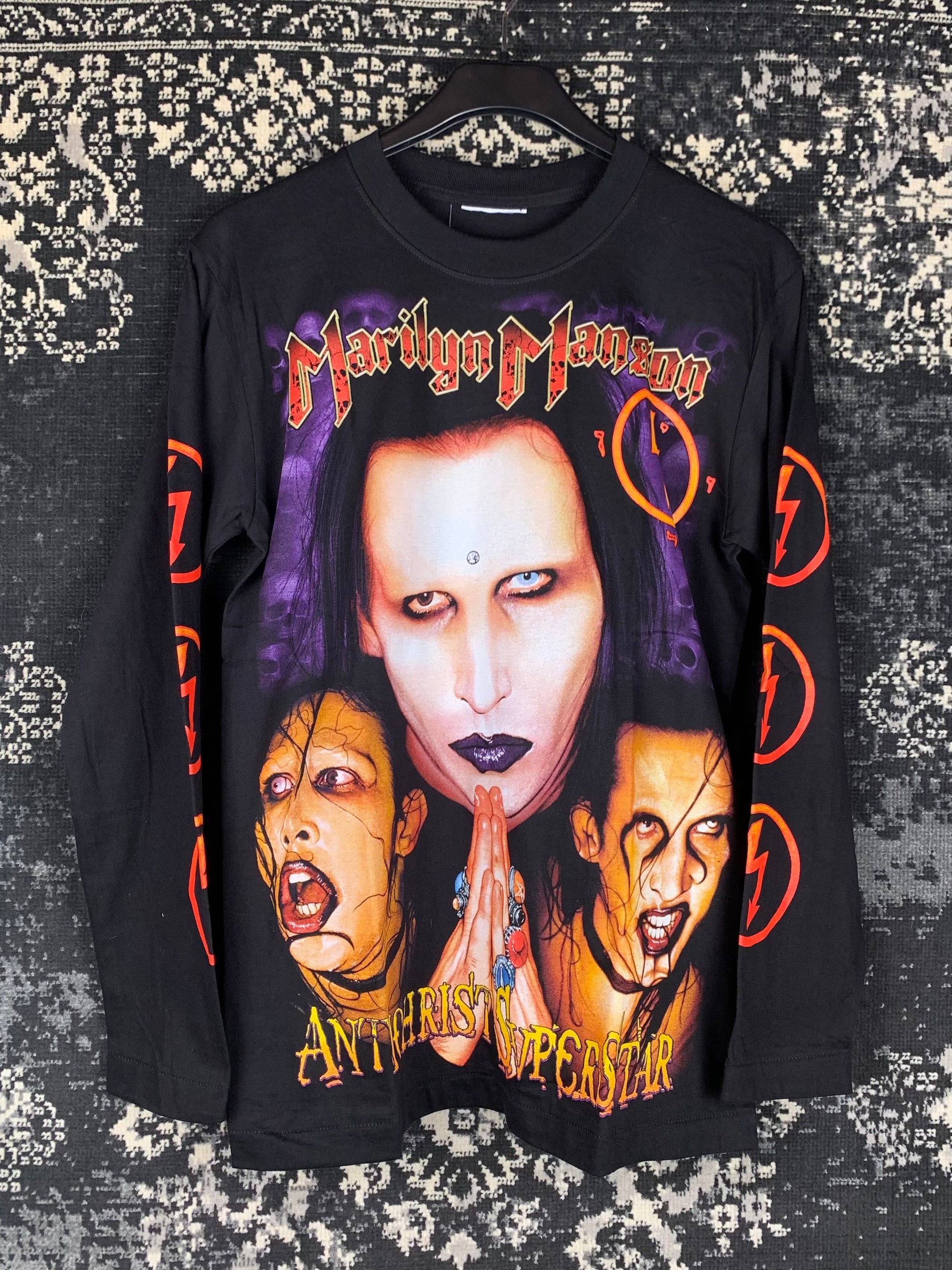 Marilyn Manson "Antichrist Superstar" All Over Print Longsleeve Shirt - Vintage Gothic Rock Tee with Bold Graphic Front & Back