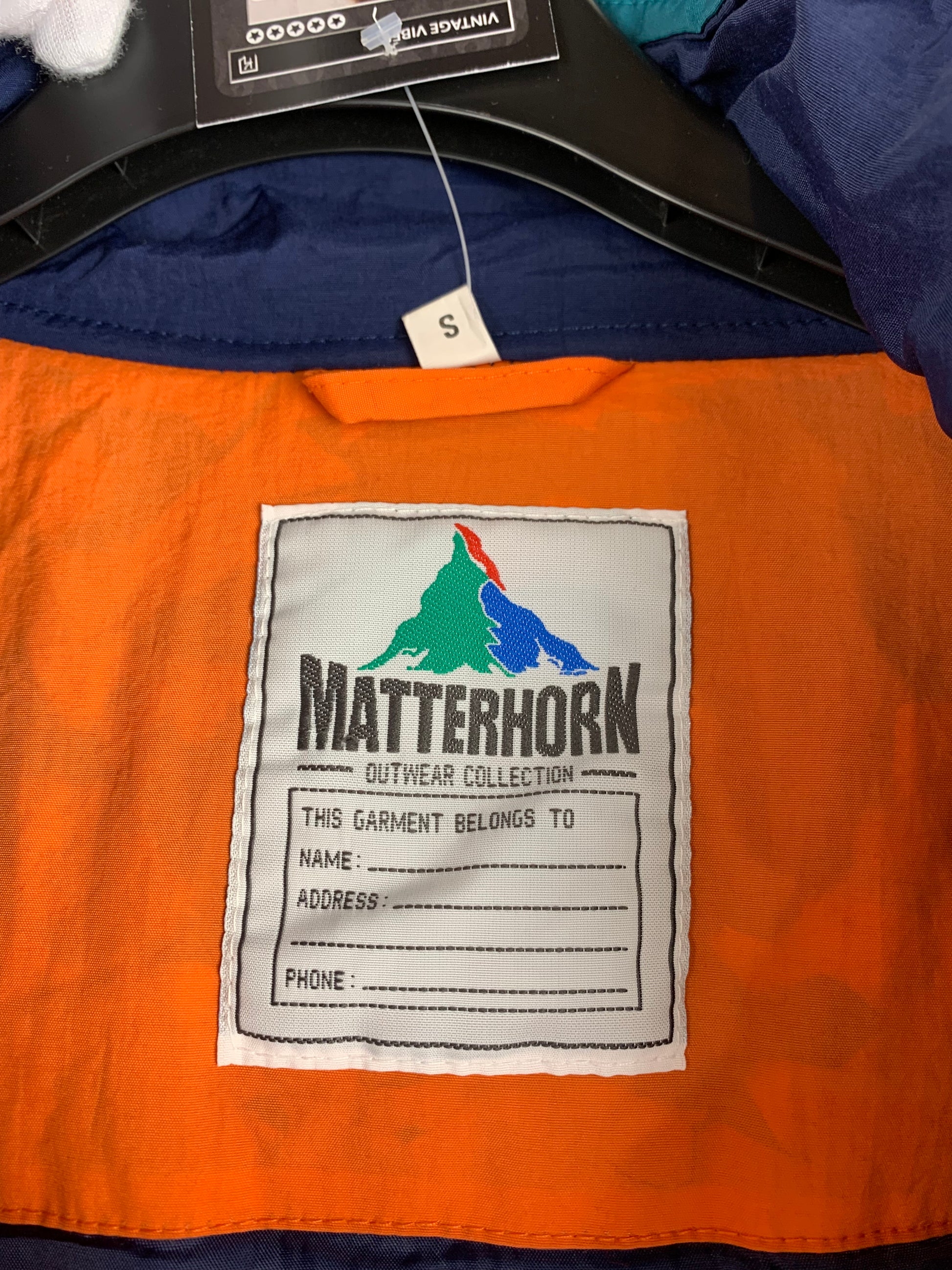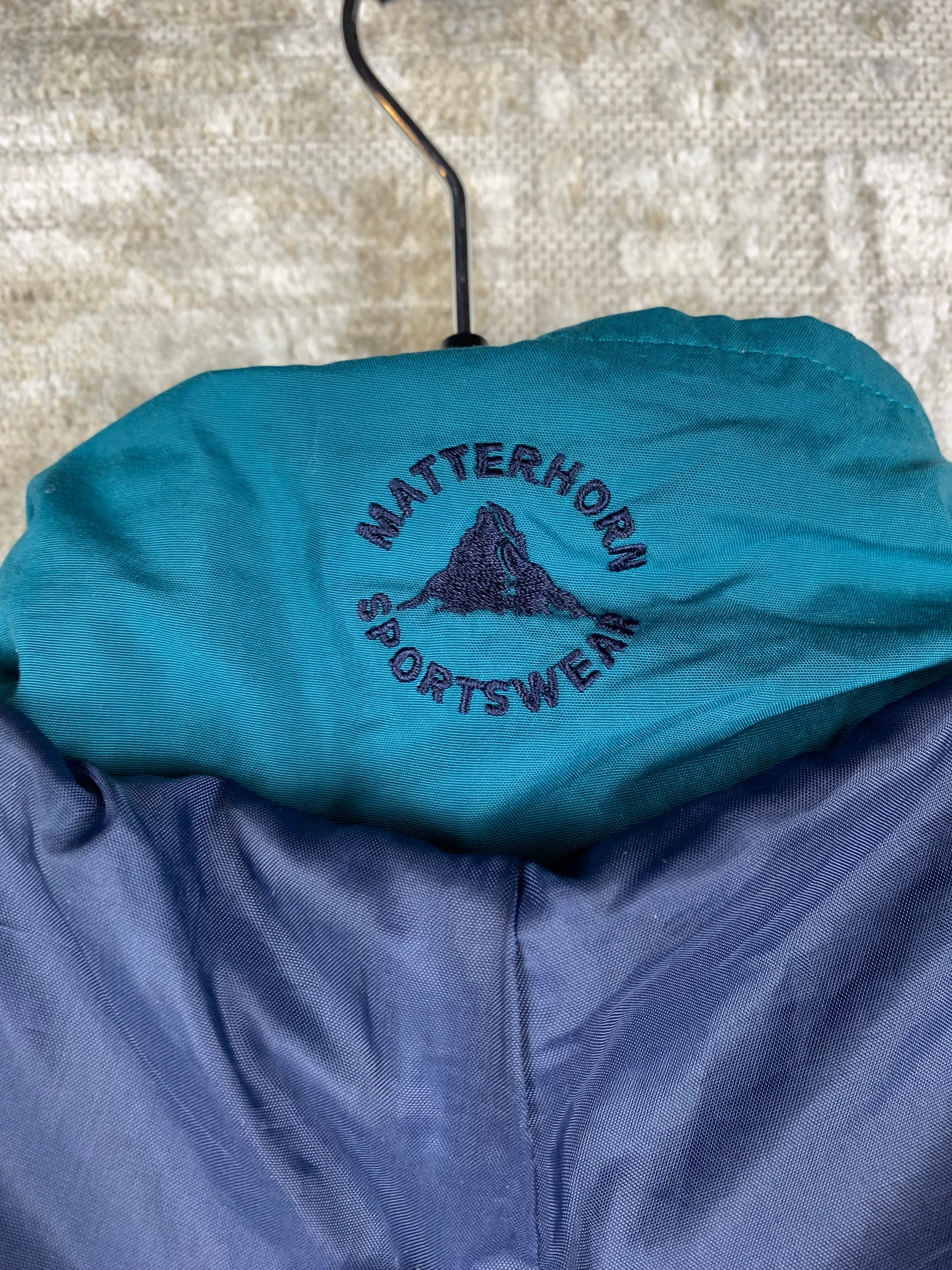 Vintage MATTERHORN Mountain Jacket Mens Green Orange Navy Colorblock Outdoor Coat Retro Ski Jacket Hooded Winter Streetwear