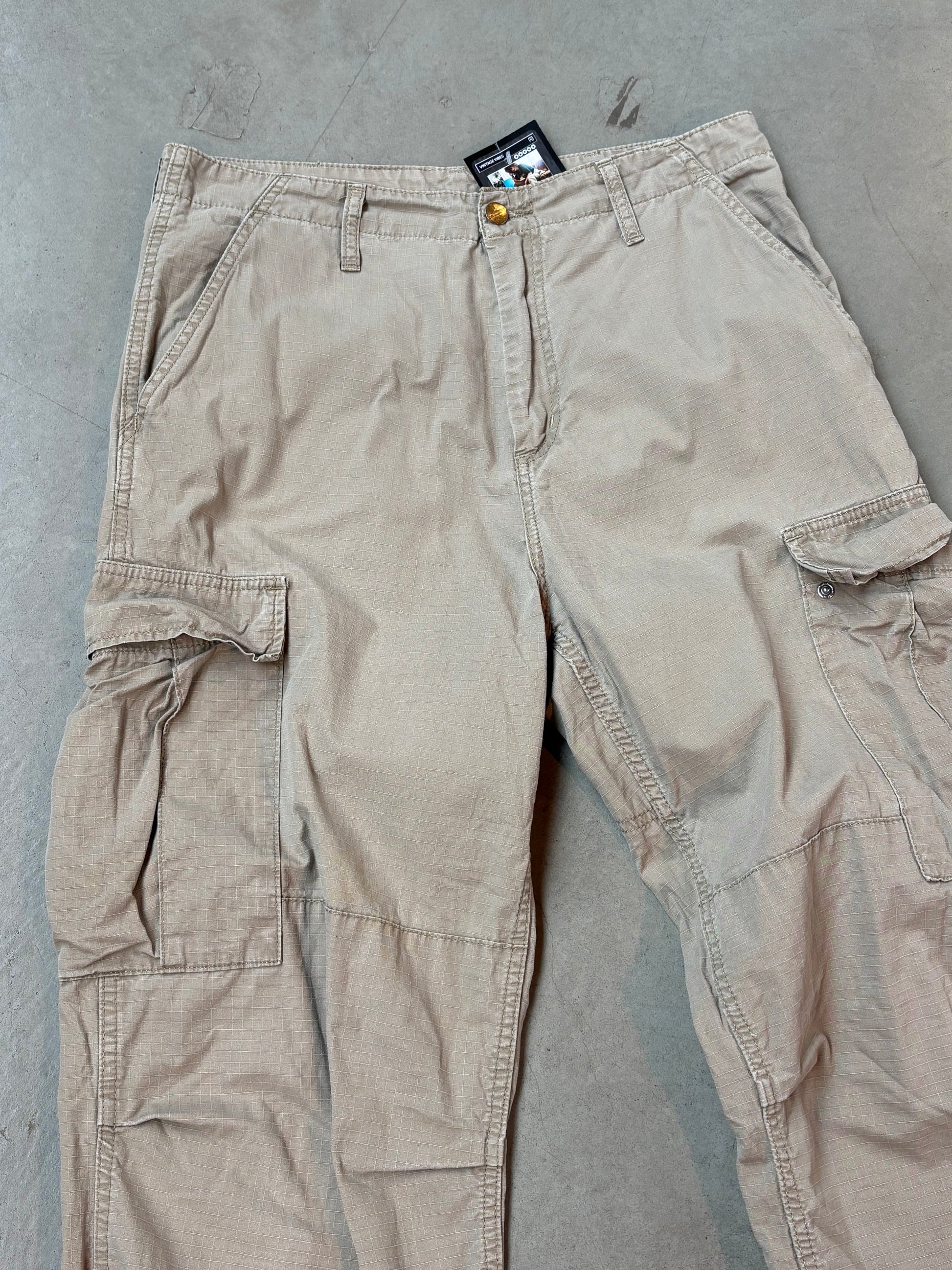 Carhartt Men’s M Beige Cargo Pants Durable Cotton Workwear Utility Pockets Straight Leg