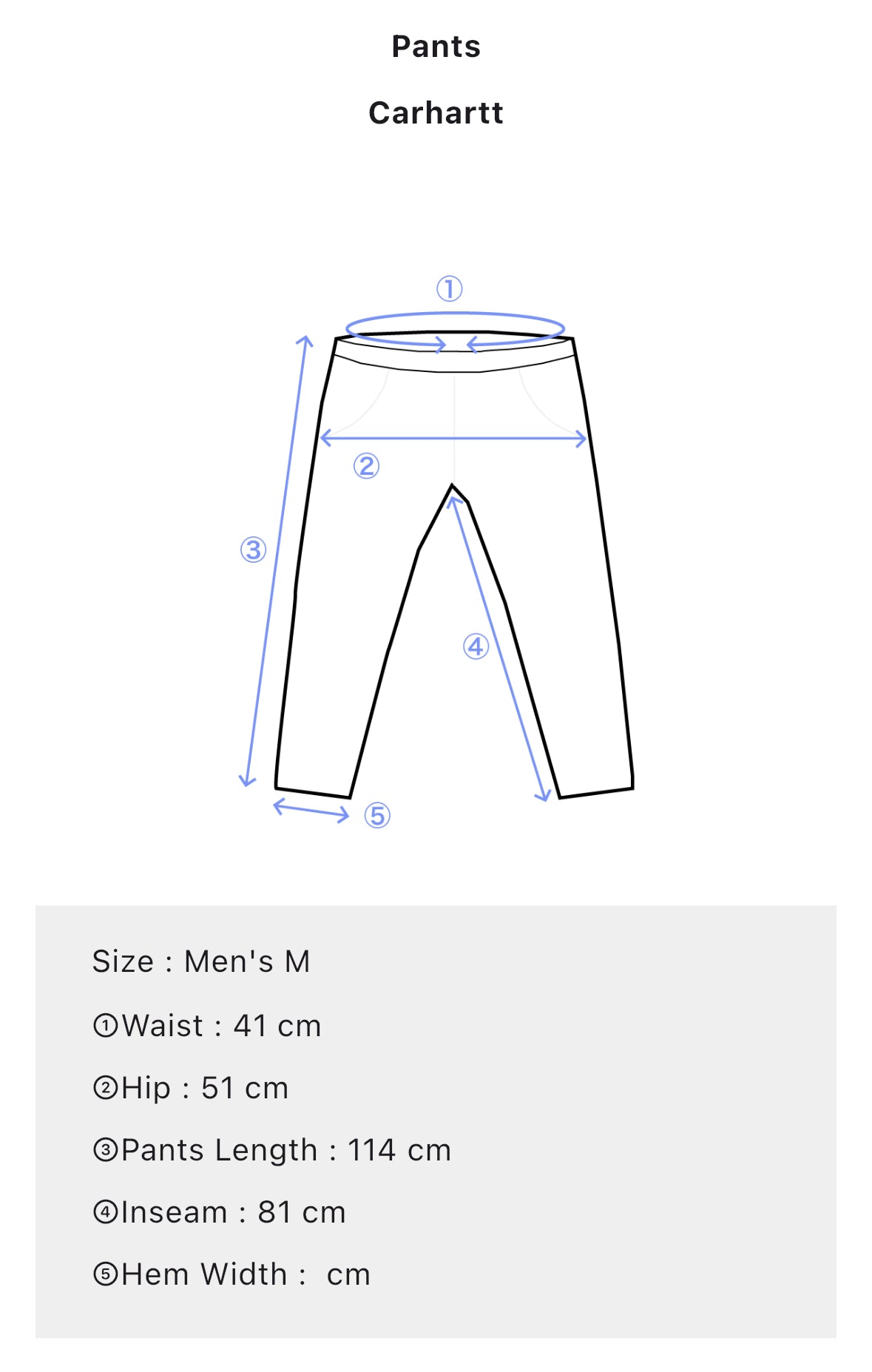 Size: Men’s M — waist: 41 cm, hip: 51 cm, pants length: 114 cm, inseam: 81 cm