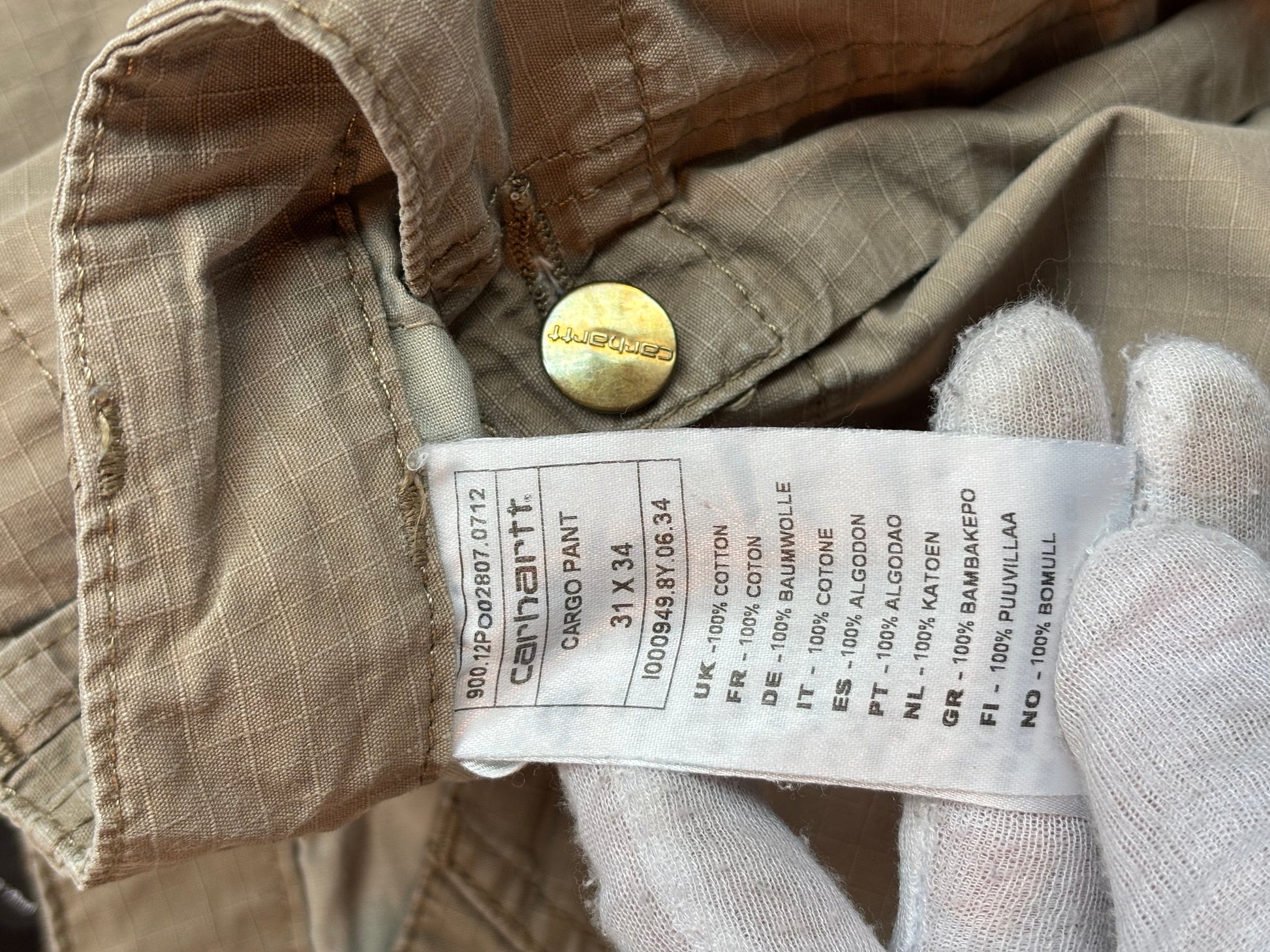 These Carhartt beige cargo pants are crafted from 100% cotton for durability and comfort 🔨. Featuring multiple utility pockets and a relaxed straight-leg fit, they’re perfect for workwear or casual streetwear.