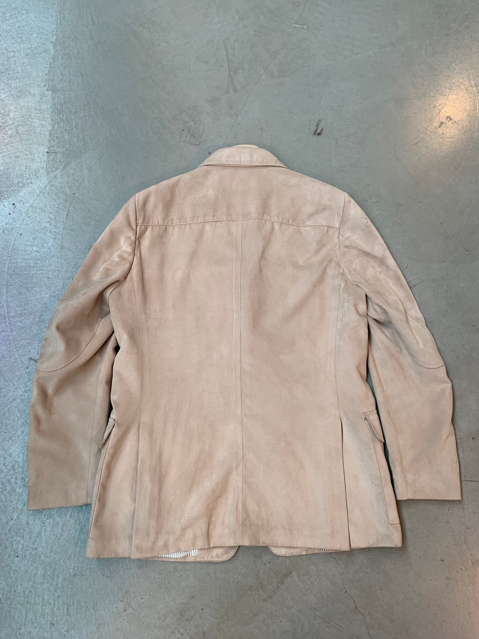 Corneliani Men’s M Beige Suede Coat Luxury Designer Button Front Jacket with Inner Zip Layer