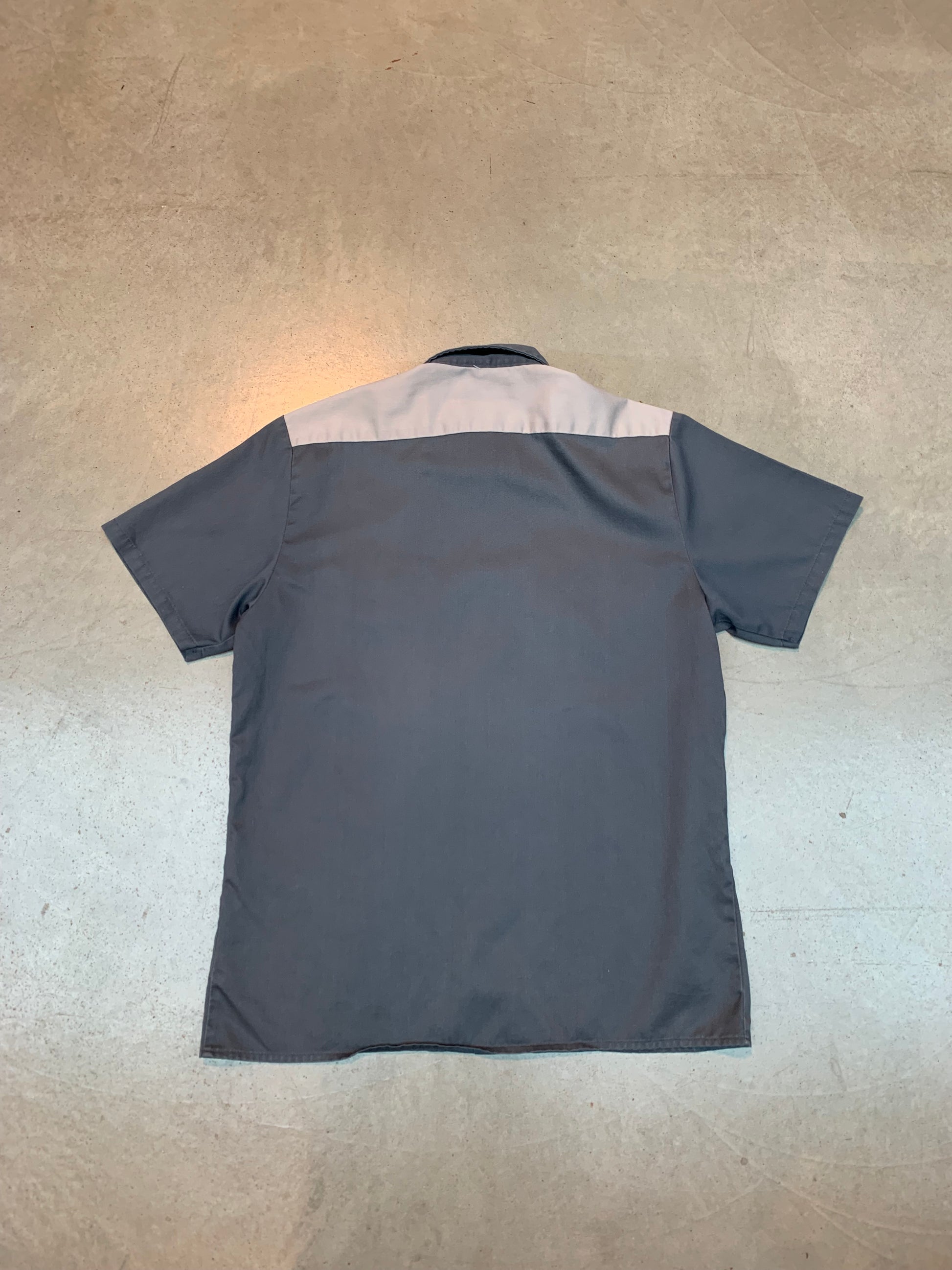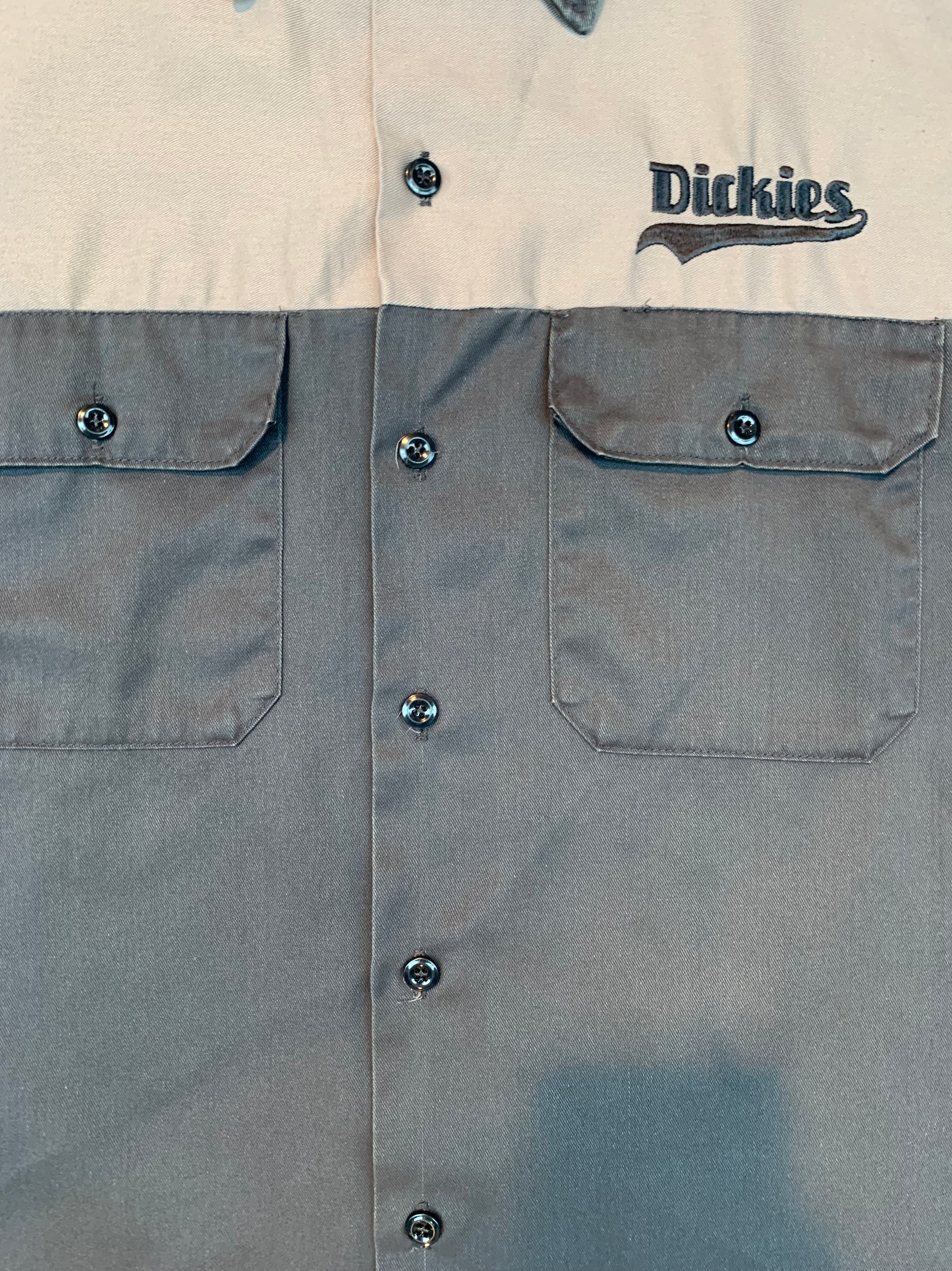 Dickies Men’s L Gray Two-Tone Short Sleeve Work Shirt Button Front Logo Pockets