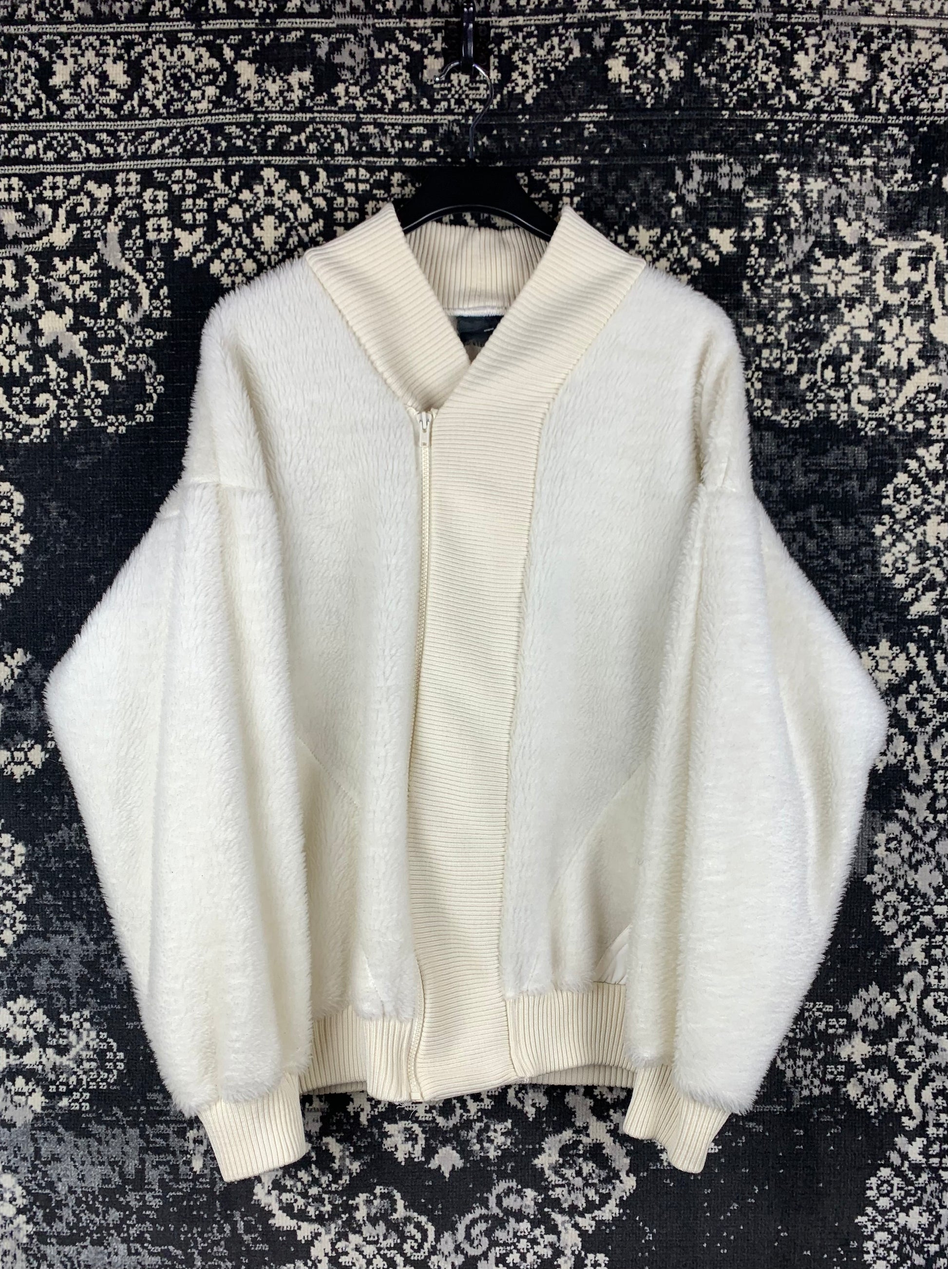 Mens Helly-Hansen Fleece Bomber Jacket – White Faux Fur Zip Up – Cozy Winter Outerwear – Ribbed Trim Collar & Cuffs – L Size Fit