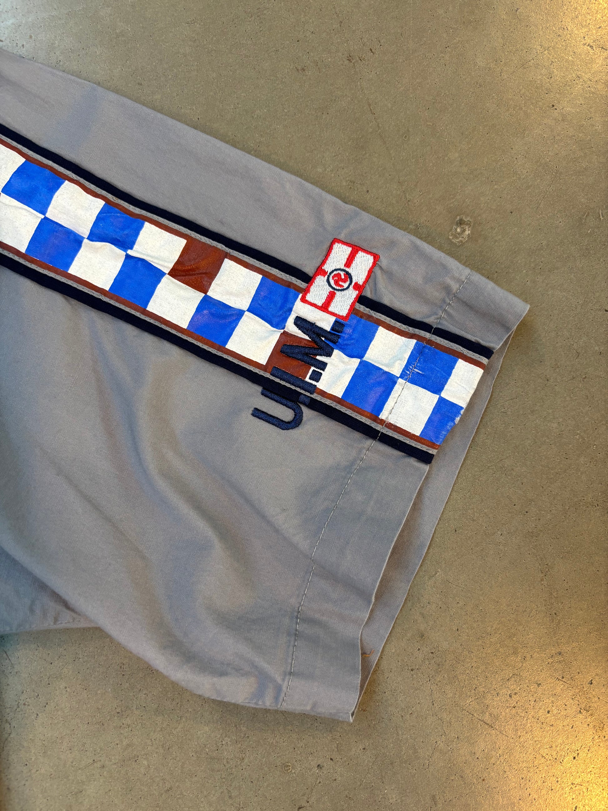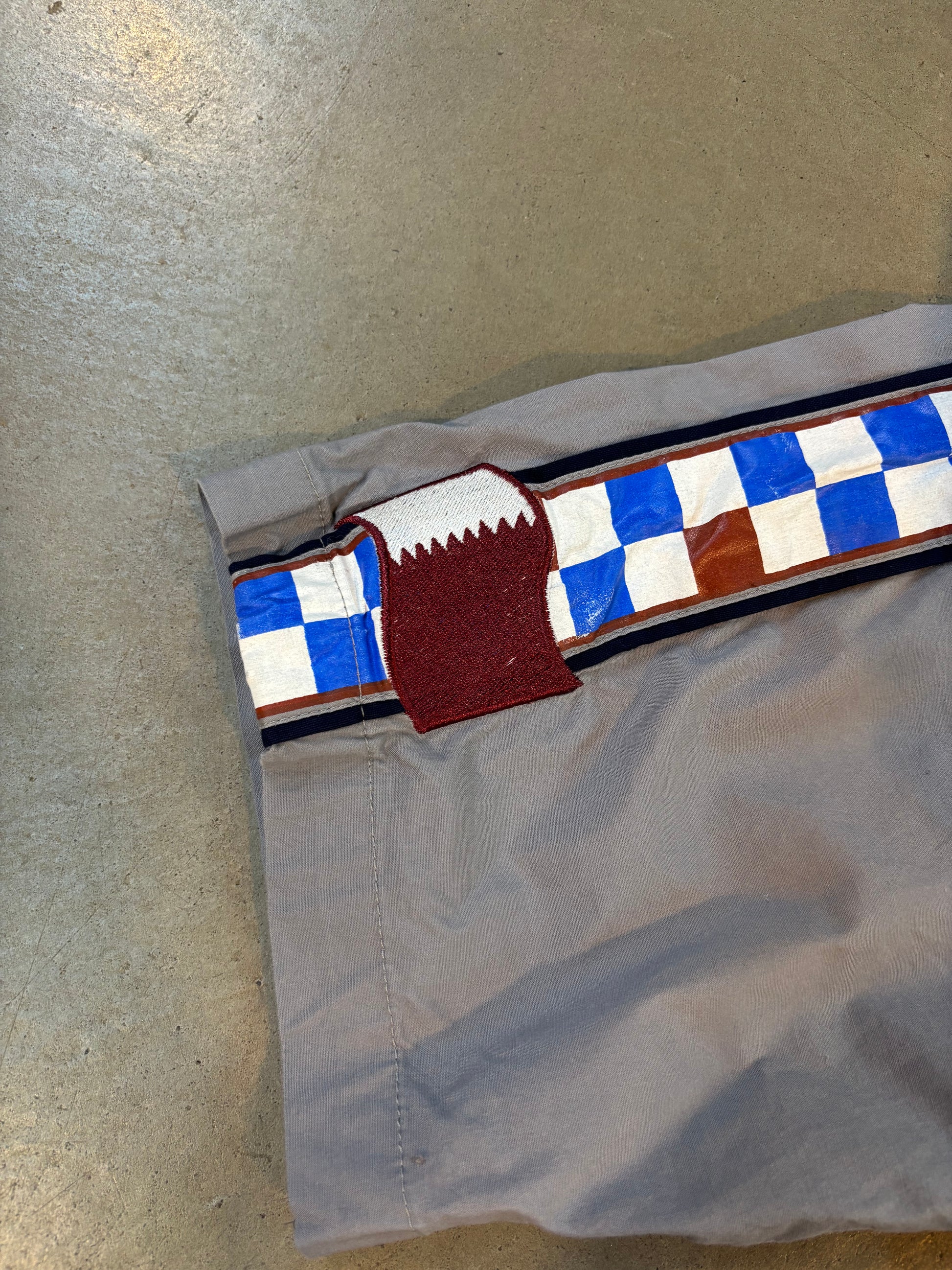 Qatar Racing Team Shirt Men's S Gray Short Sleeve F1 Motorsport Top Embroidered Logo Color Blocks Checkered Sleeve Print