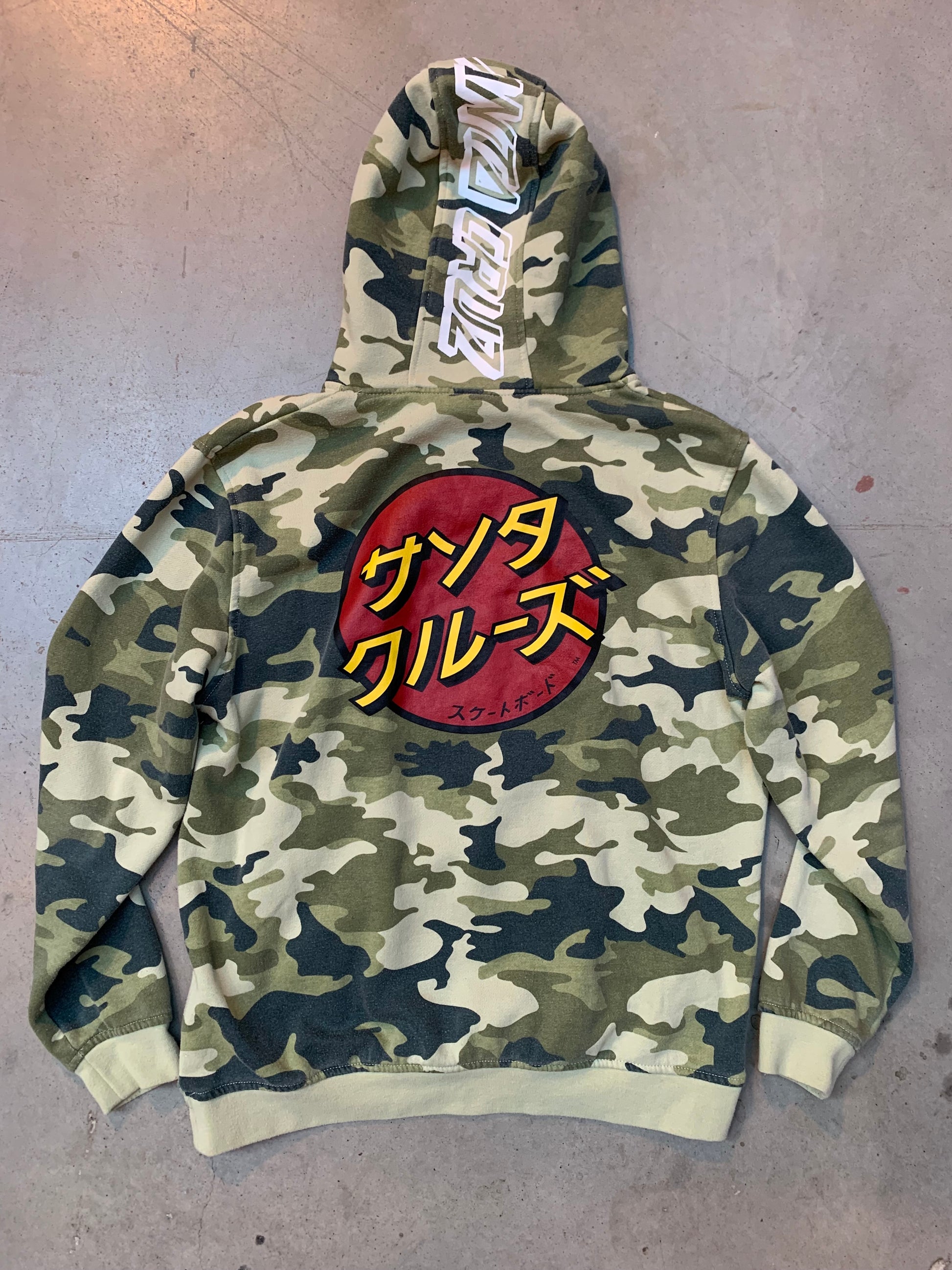 Santa Cruz Camouflage Hoodie Men's S - Japanese Logo Pullover Sweatshirt with Front Pocket and Drawstring Hood