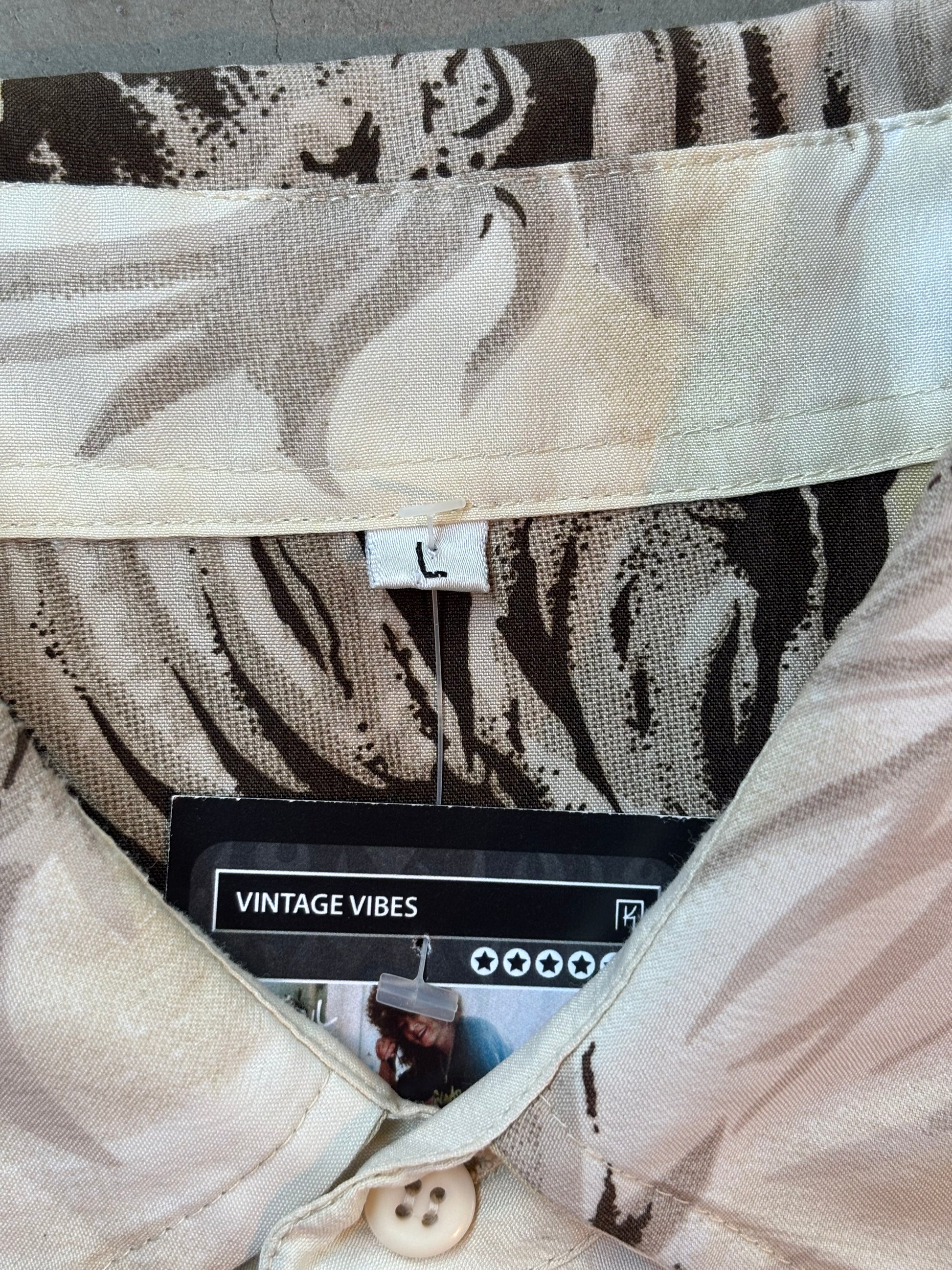 Vintage Men’s L White Satin Dragon Shirt Button Up Short Sleeve Retro Asian Style Lightweight Streetwear Party Top