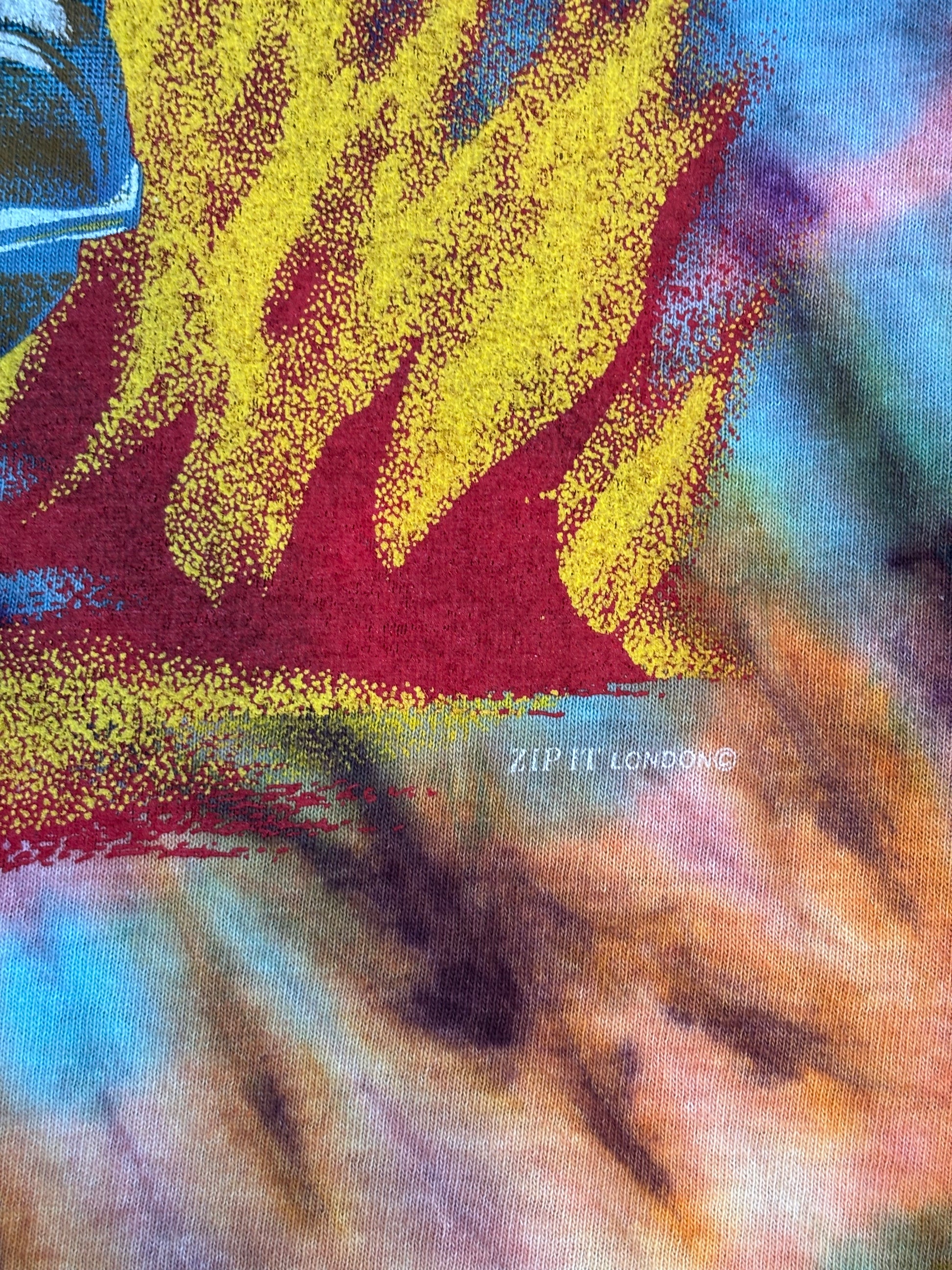 Vintage single stitch tie dye t-shirt men’s M biker graphic motorcycle flames skeleton rare retro streetwear