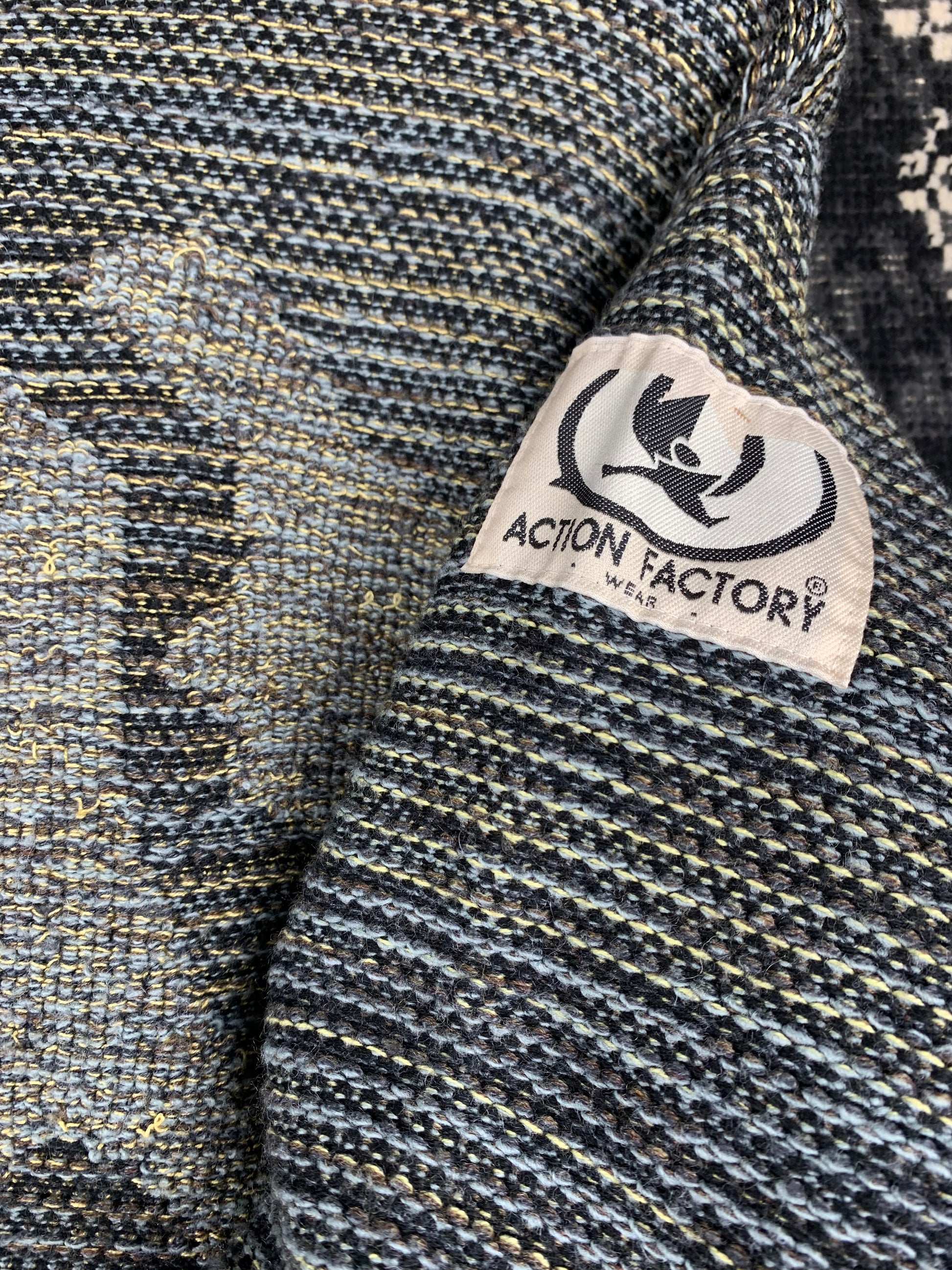 Men's Vintage Action Factory Half-Zip Pullover Sweater – Retro 90s Knit with Animal Pattern