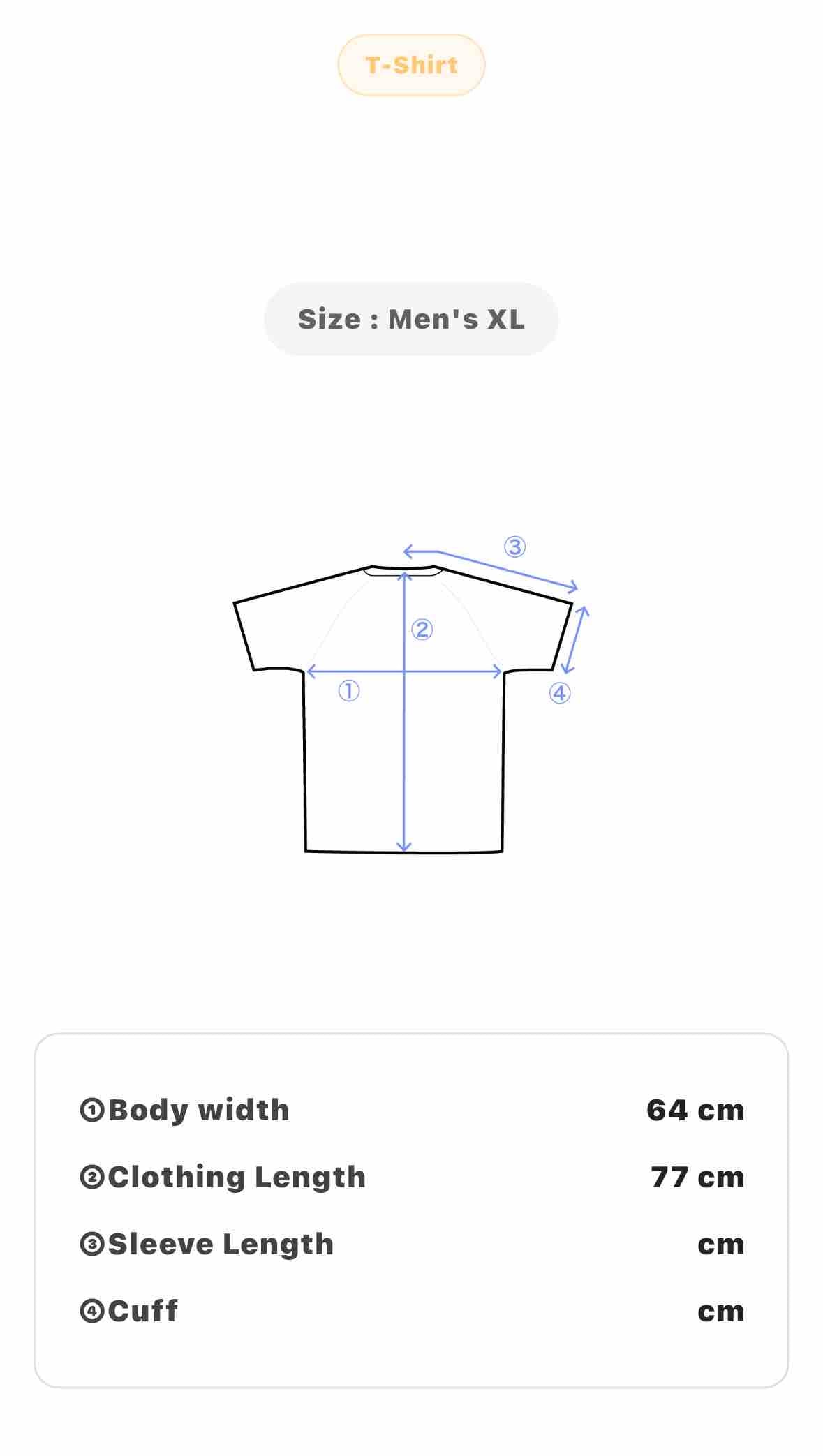 • Size: Men's XL; Body Width 64 cm; Clothing length 77 cm