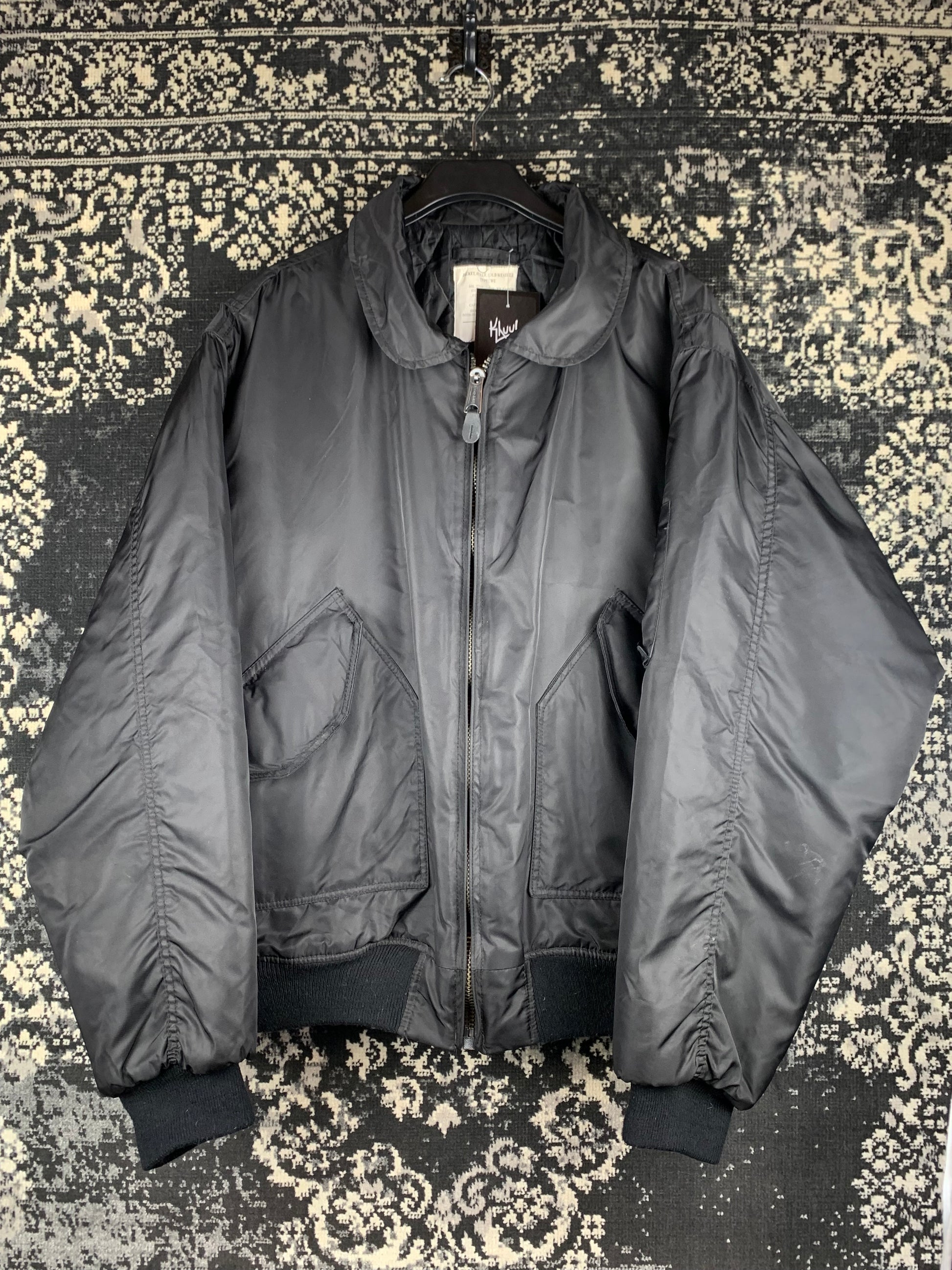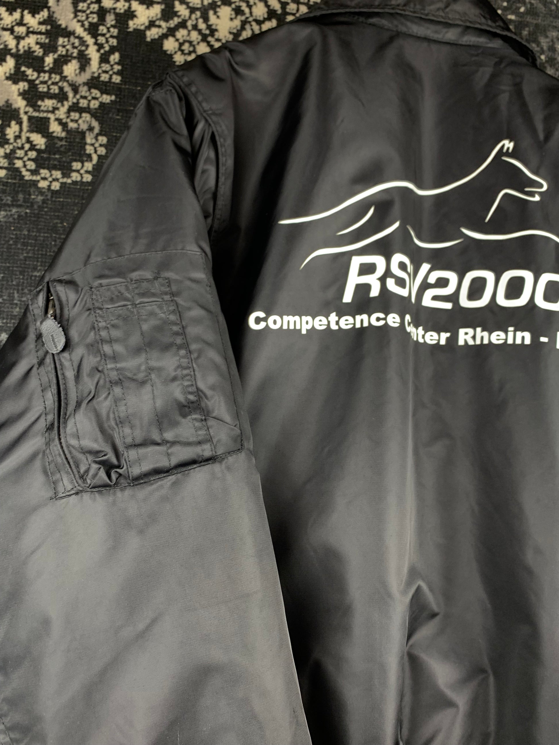 Men's Vintage Black Military Bomber Jacket with Quilted Lining and RSV2000 Dog Logo Back Print – USA Style Cold Weather Flight Jacket XXL