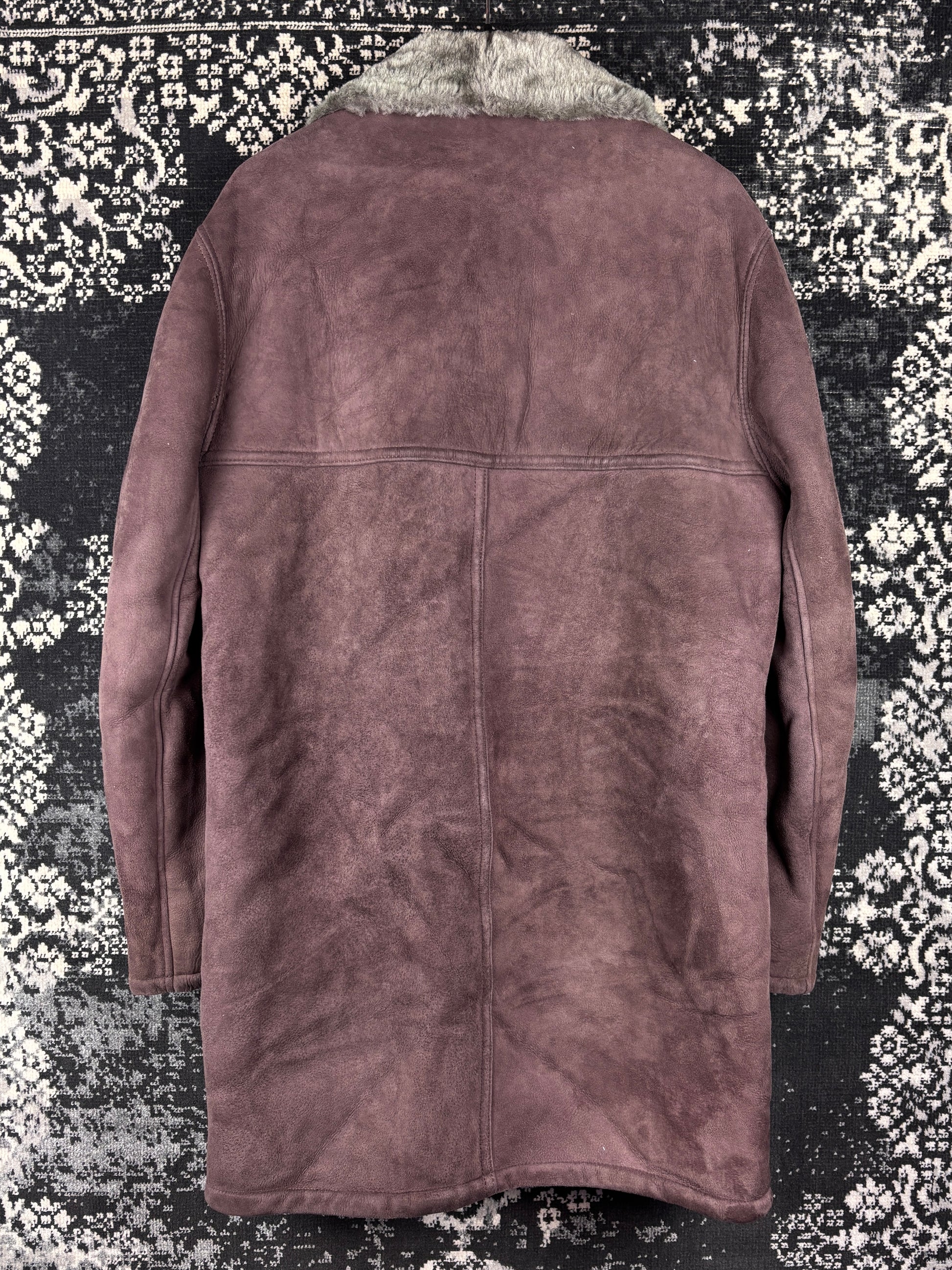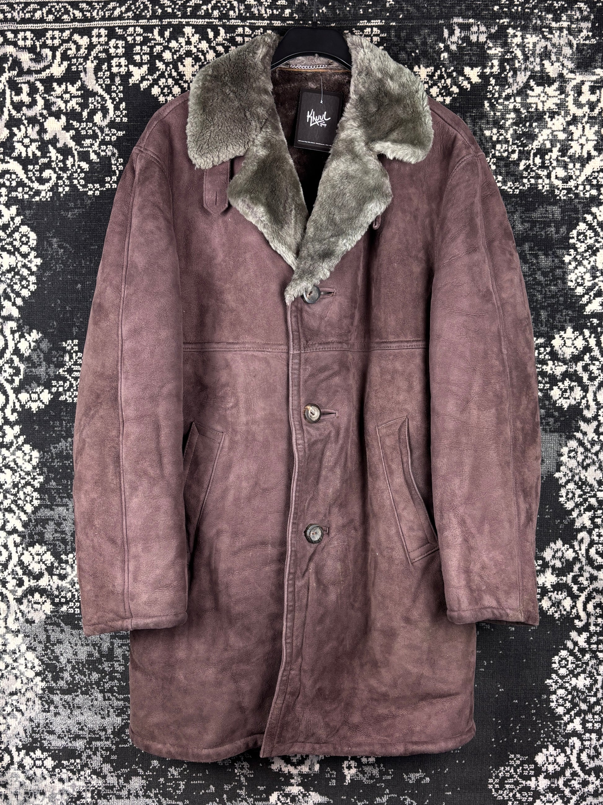 Men's Vintage Dark Brown Faux Suede Long Winter Coat with Grey Faux Fur Inner Lining & Classic Button Front Style