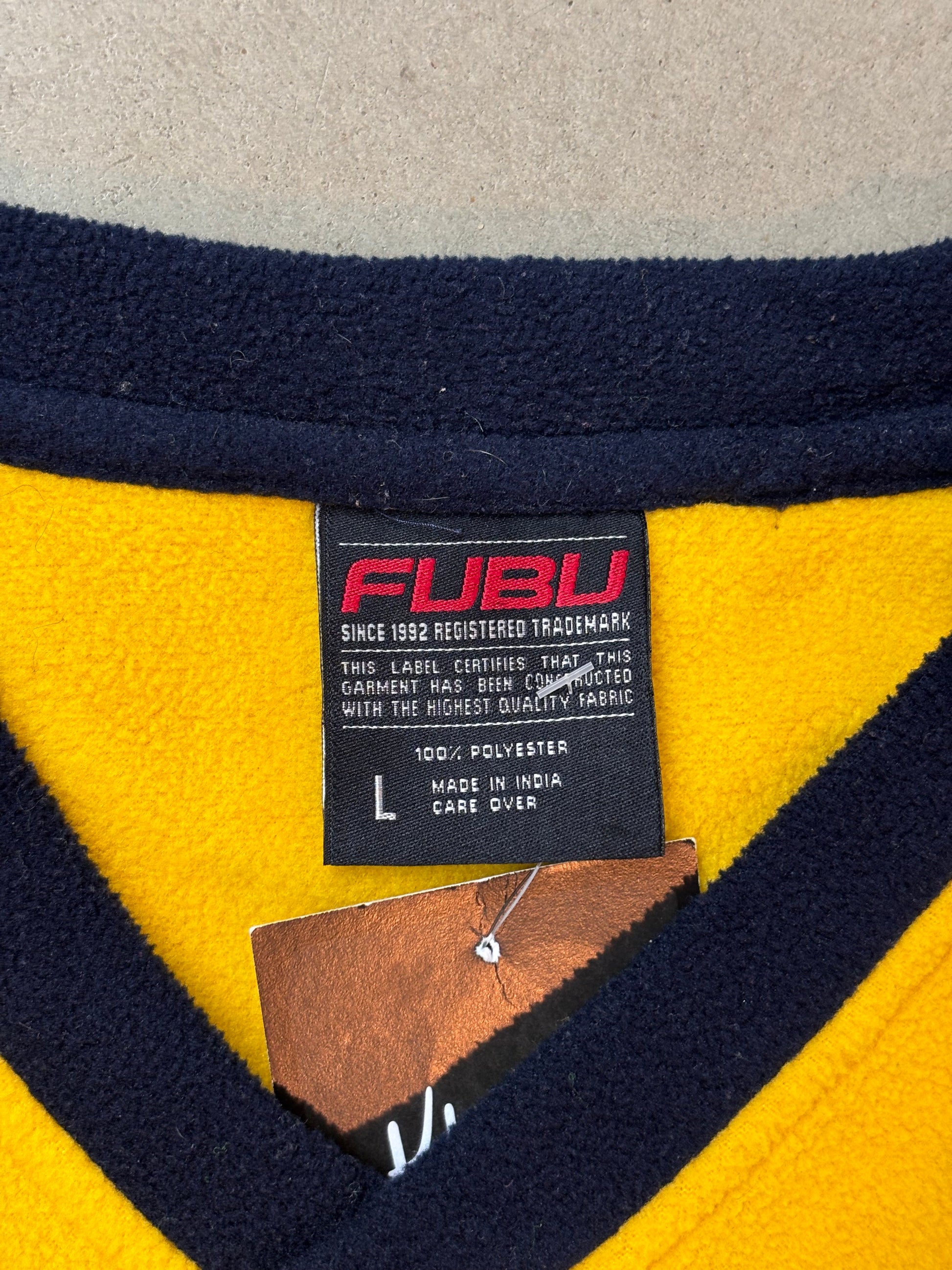 FUBU Yellow And Navy Long Sleeve Pullover Men’s Large Embroidered Logo Retro Streetwear Comfortable Polyester Top