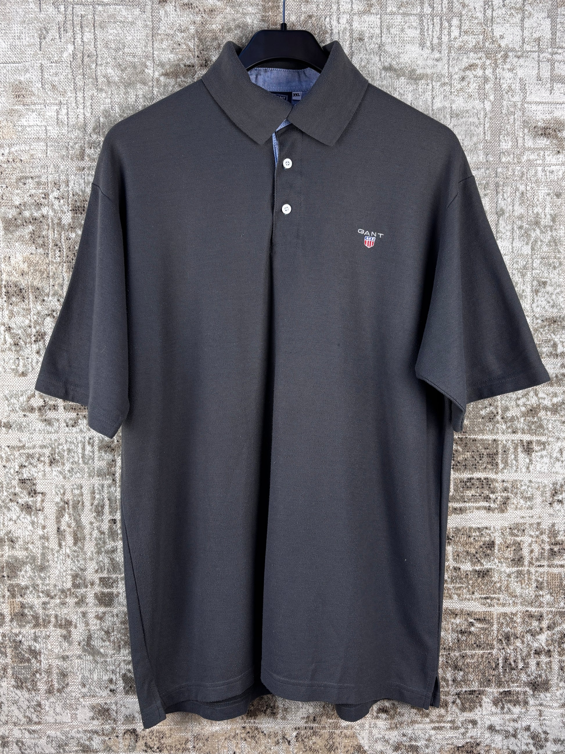Mens Vintage GANT Dark Gray Polo Shirt Classic Embroidered Logo Cotton Short Sleeve Casual Preppy Streetwear XXL