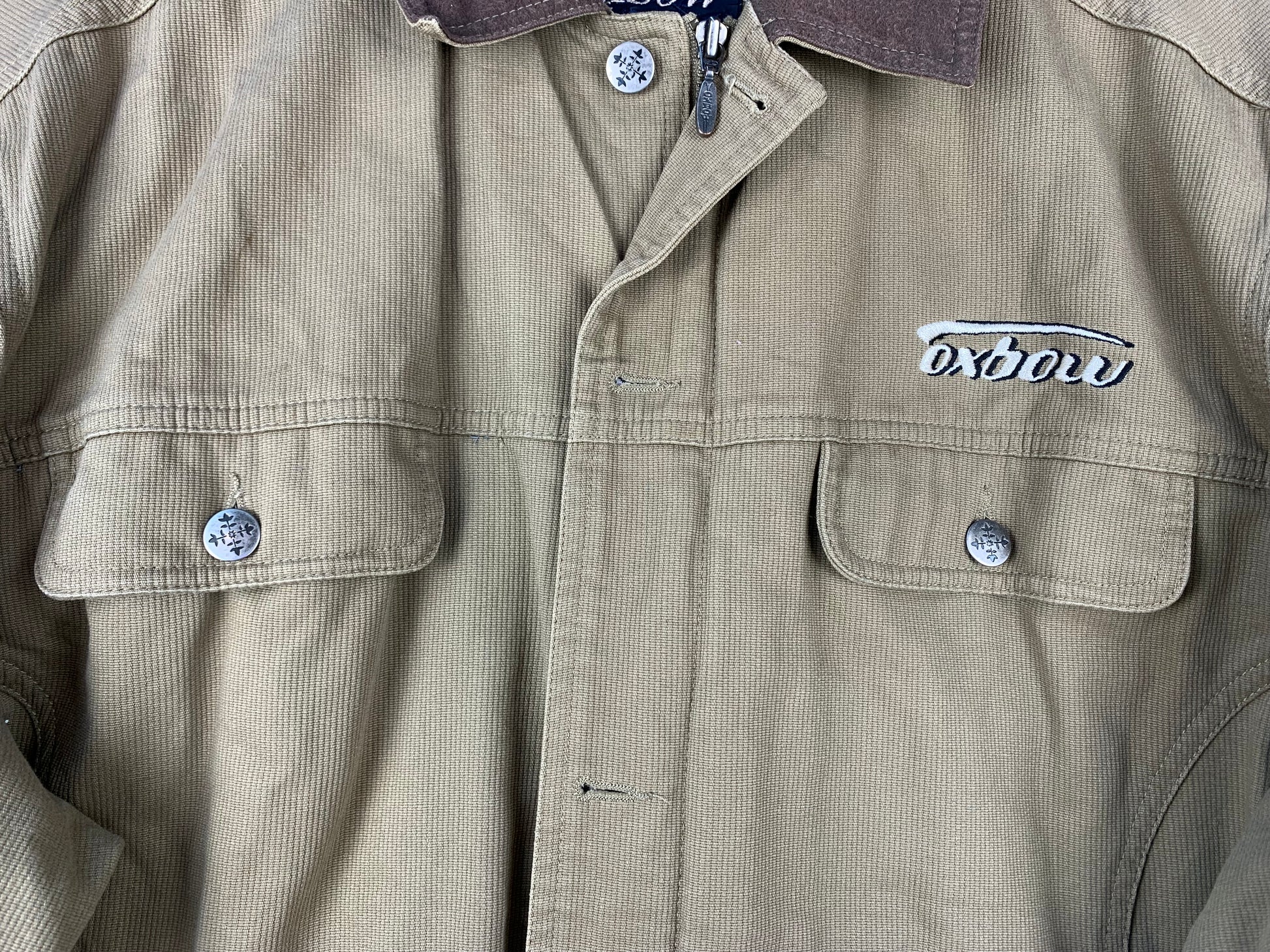 Mens Vintage Oxbow Chore Workwear Jacket – Heavy Cotton Utility Coat – Corduroy Collar – Embroidered Logo – Size L