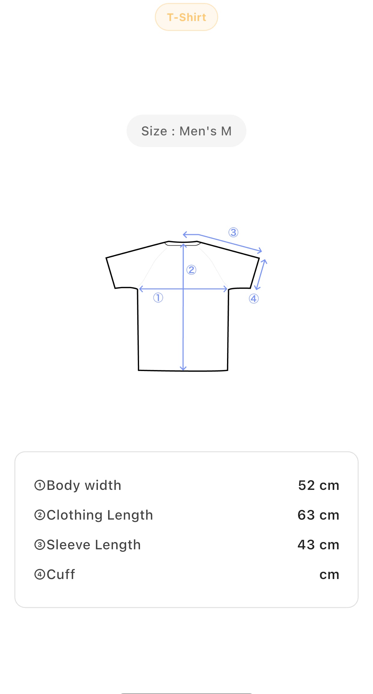 Size: Men’s M; Body width 52 cm; Length 63 cm; Sleeve length 43 cm