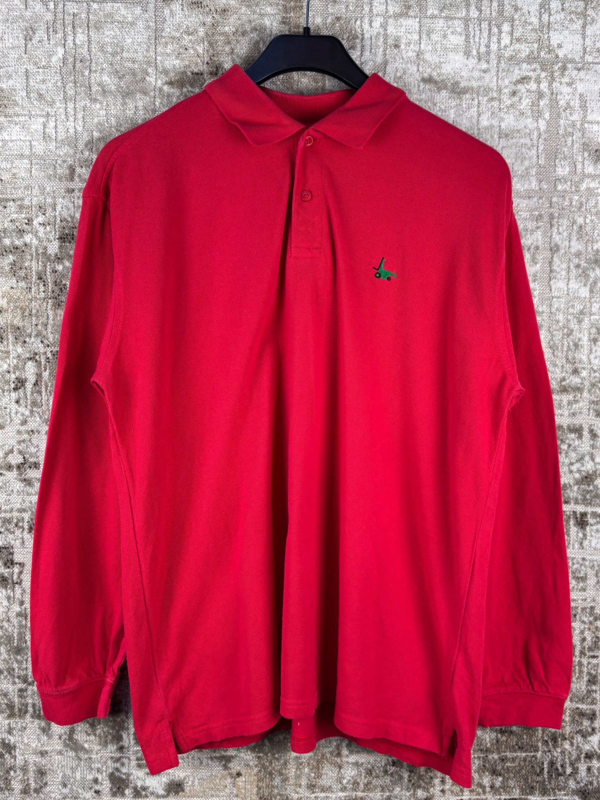 Mens Vintage Red Long Sleeve Polo Shirt