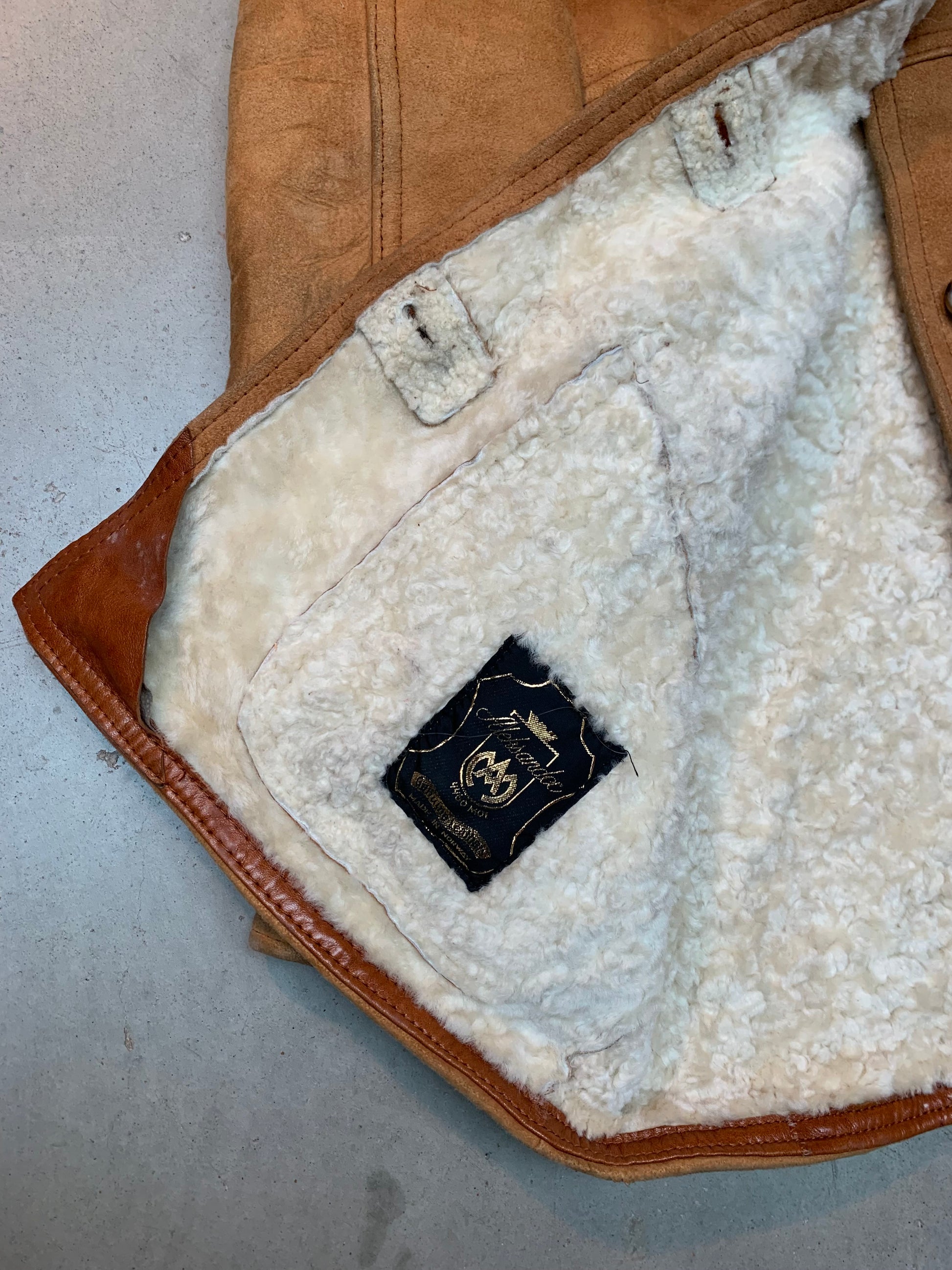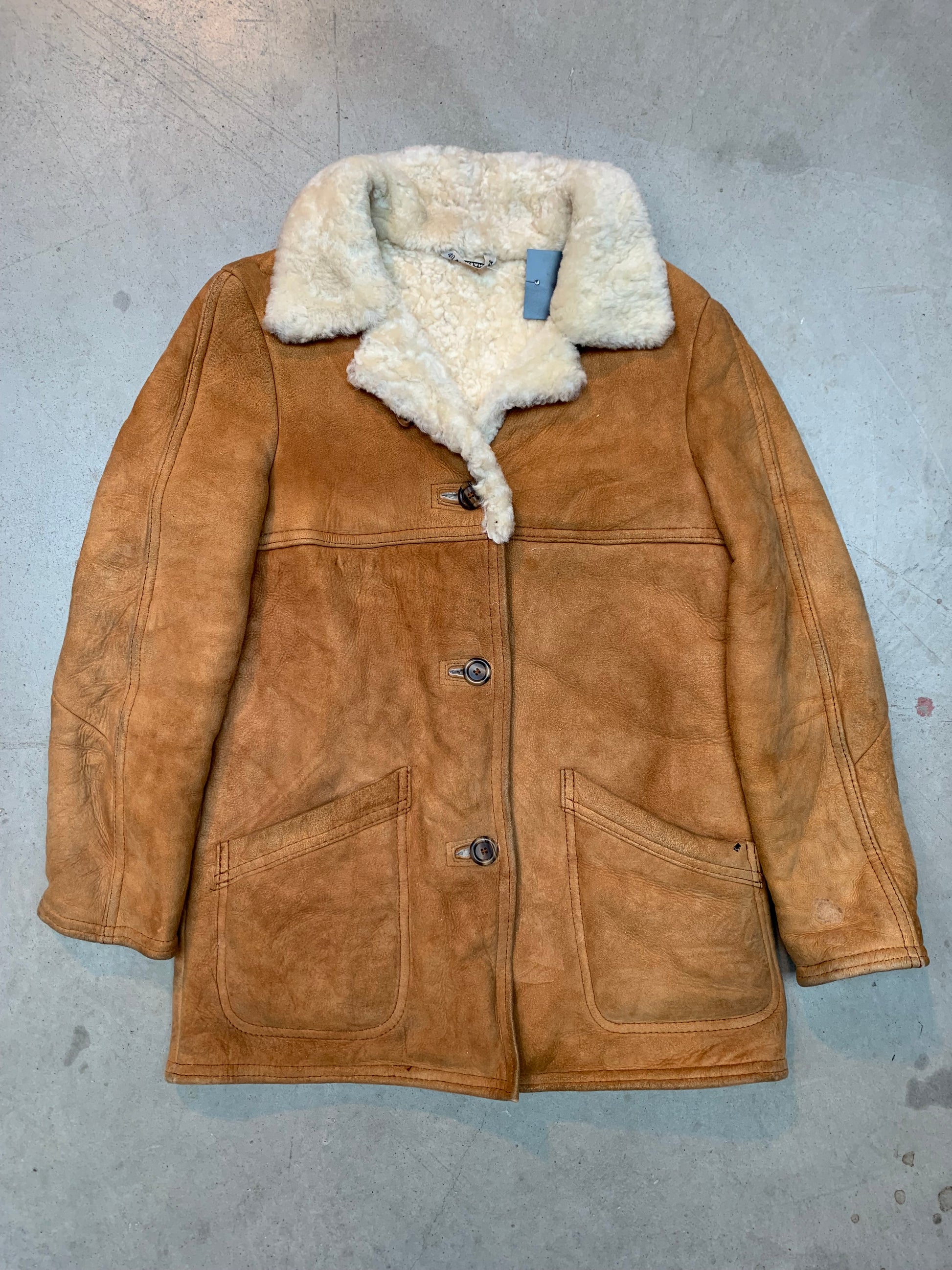 Vintage Men's Shearling Coat in Tan Suede