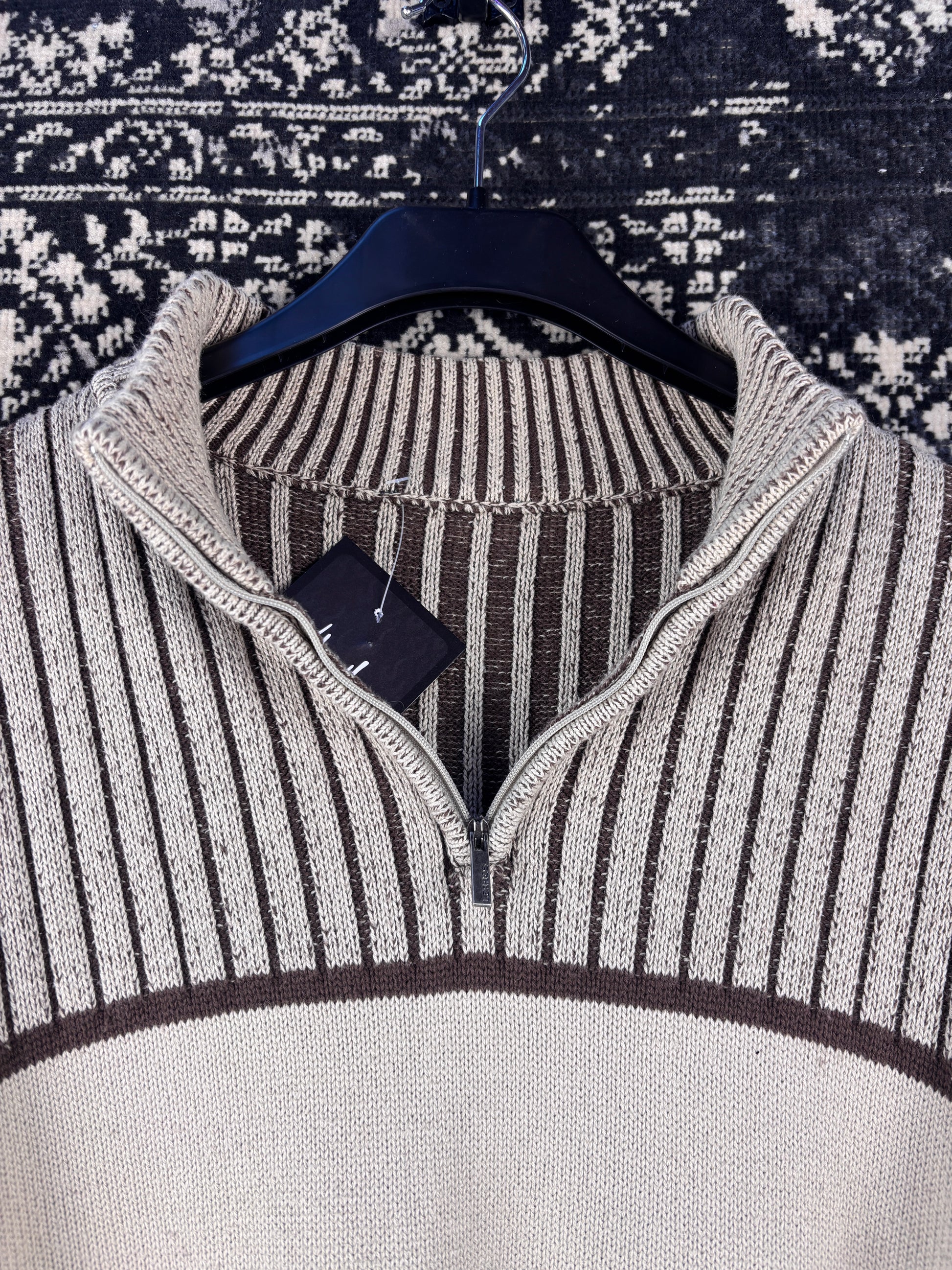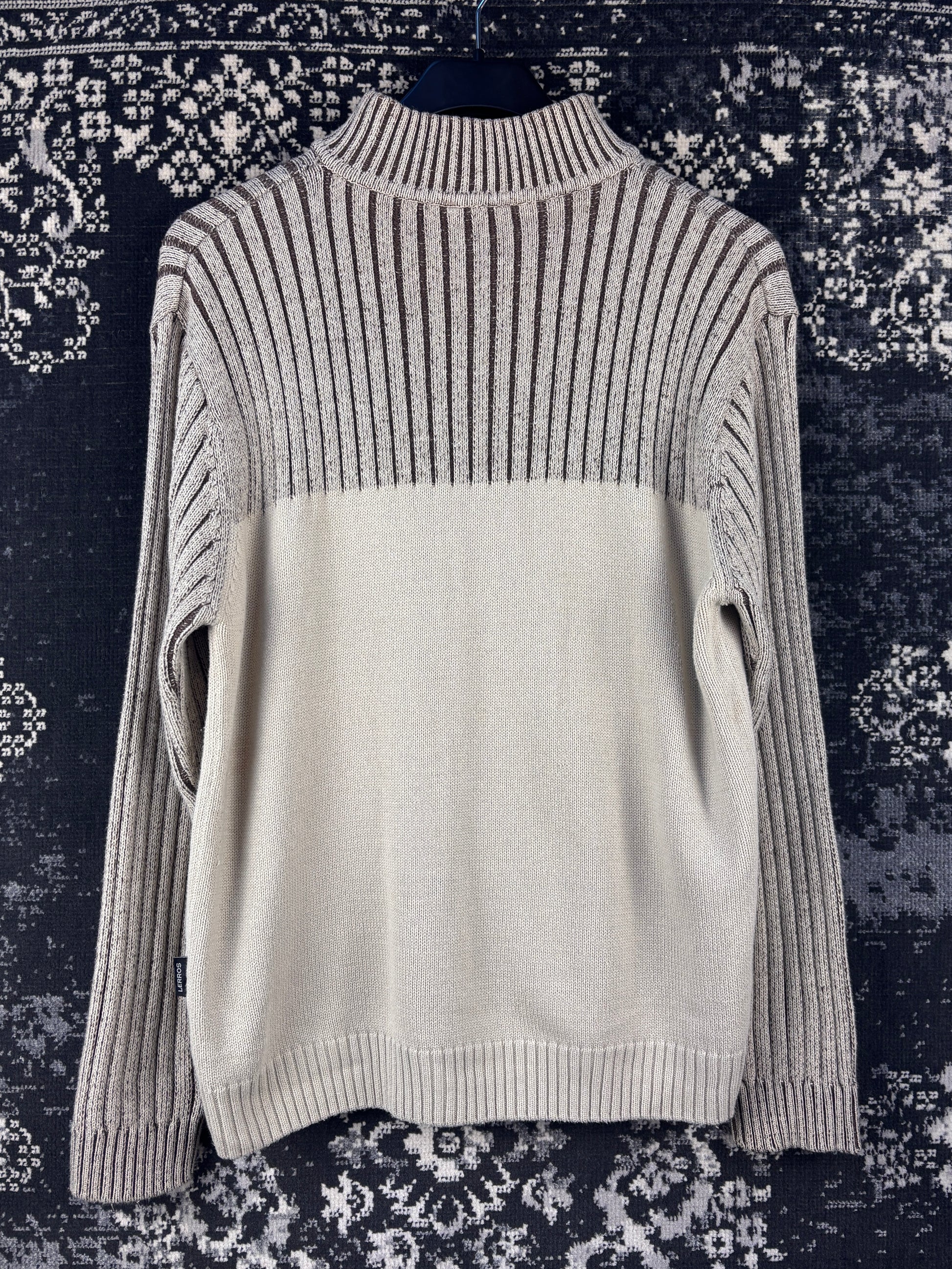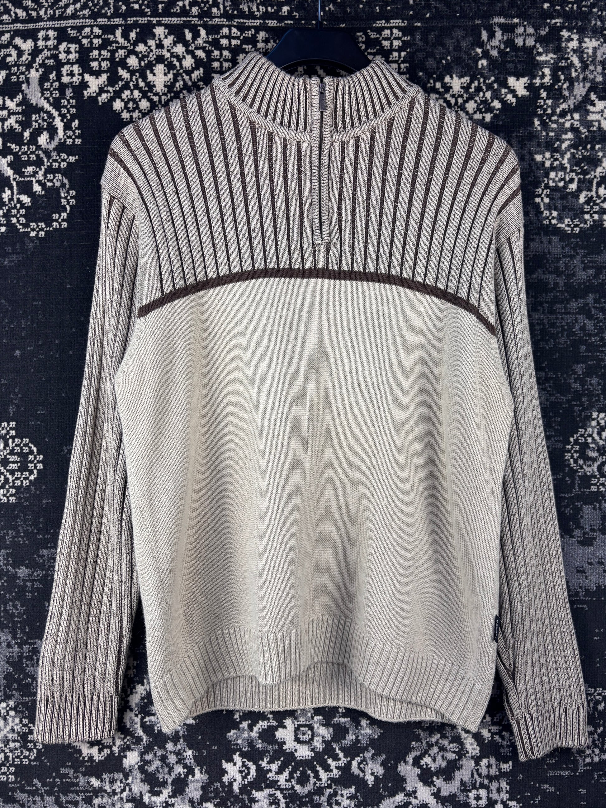 Men's Y2K Beige Half Ribbed Zip Sweater