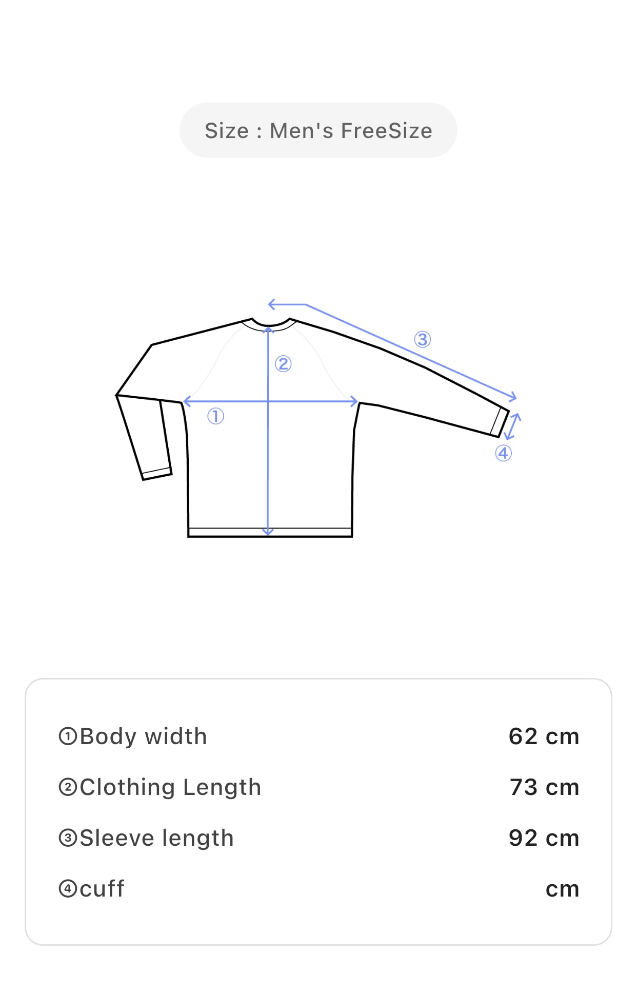 • Size: Men's XL – Body Width 62 cm, Clothing Length 73 cm, Sleeve Length 92 cm
