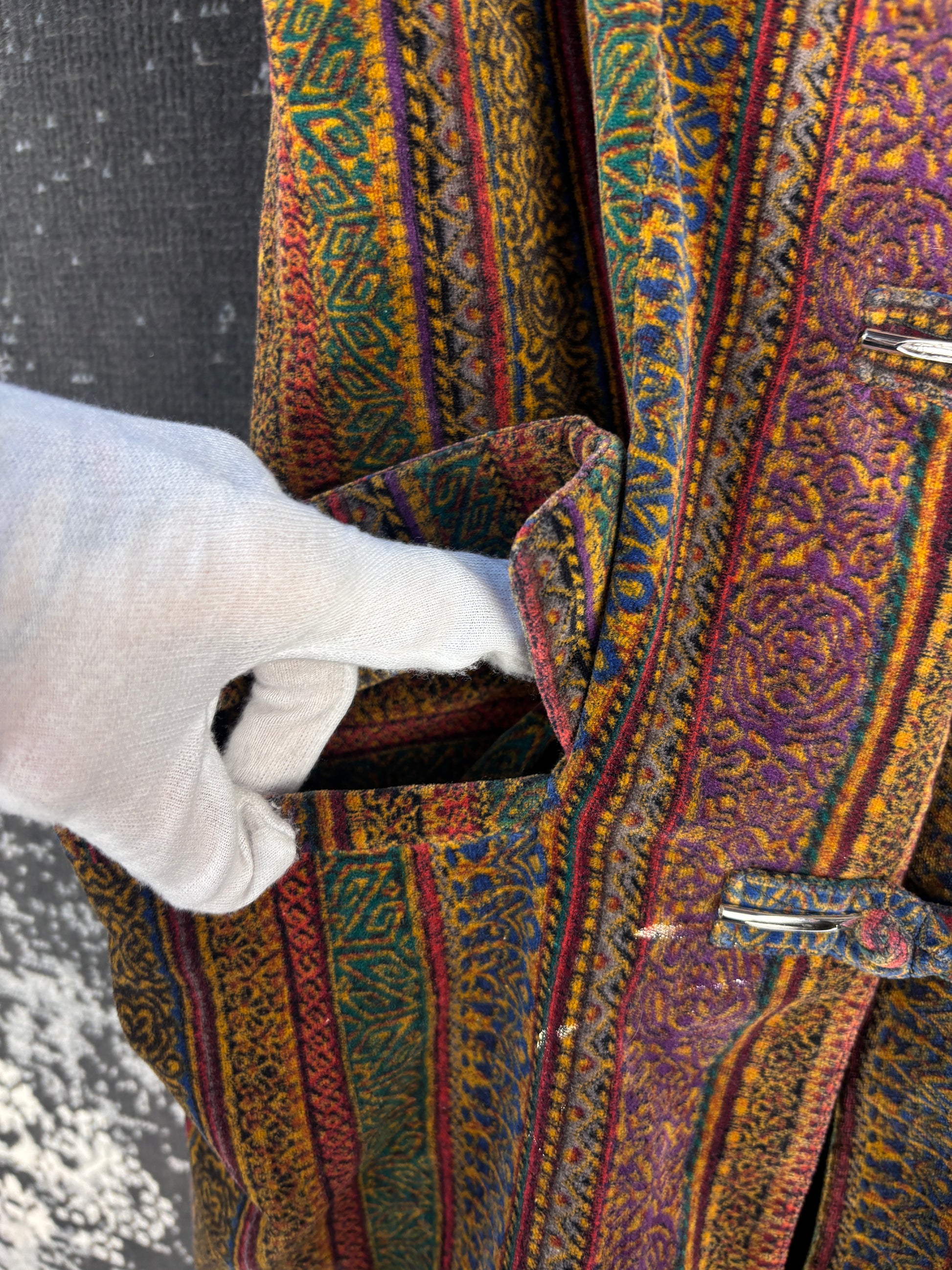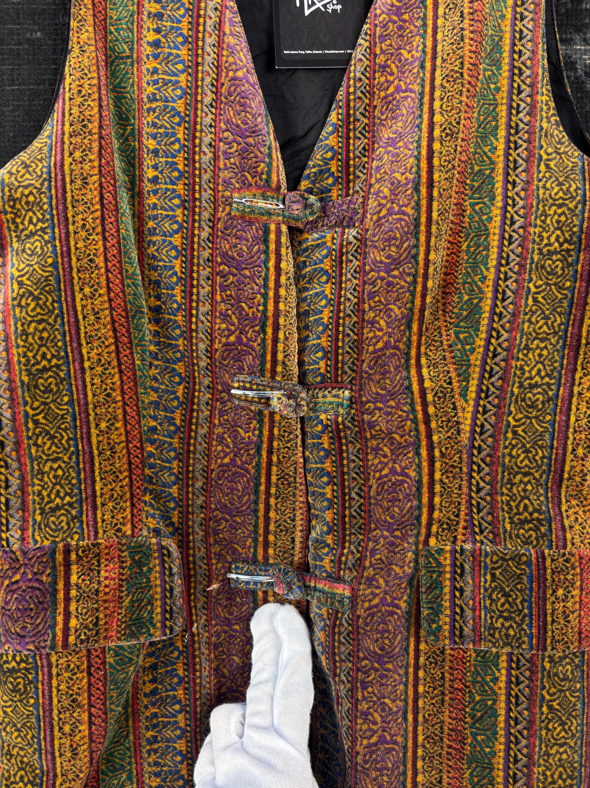 Multicolor Patterned Hippie Style Velvet Vest Boho Ethnic Toggle Front Sleeveless Jacket