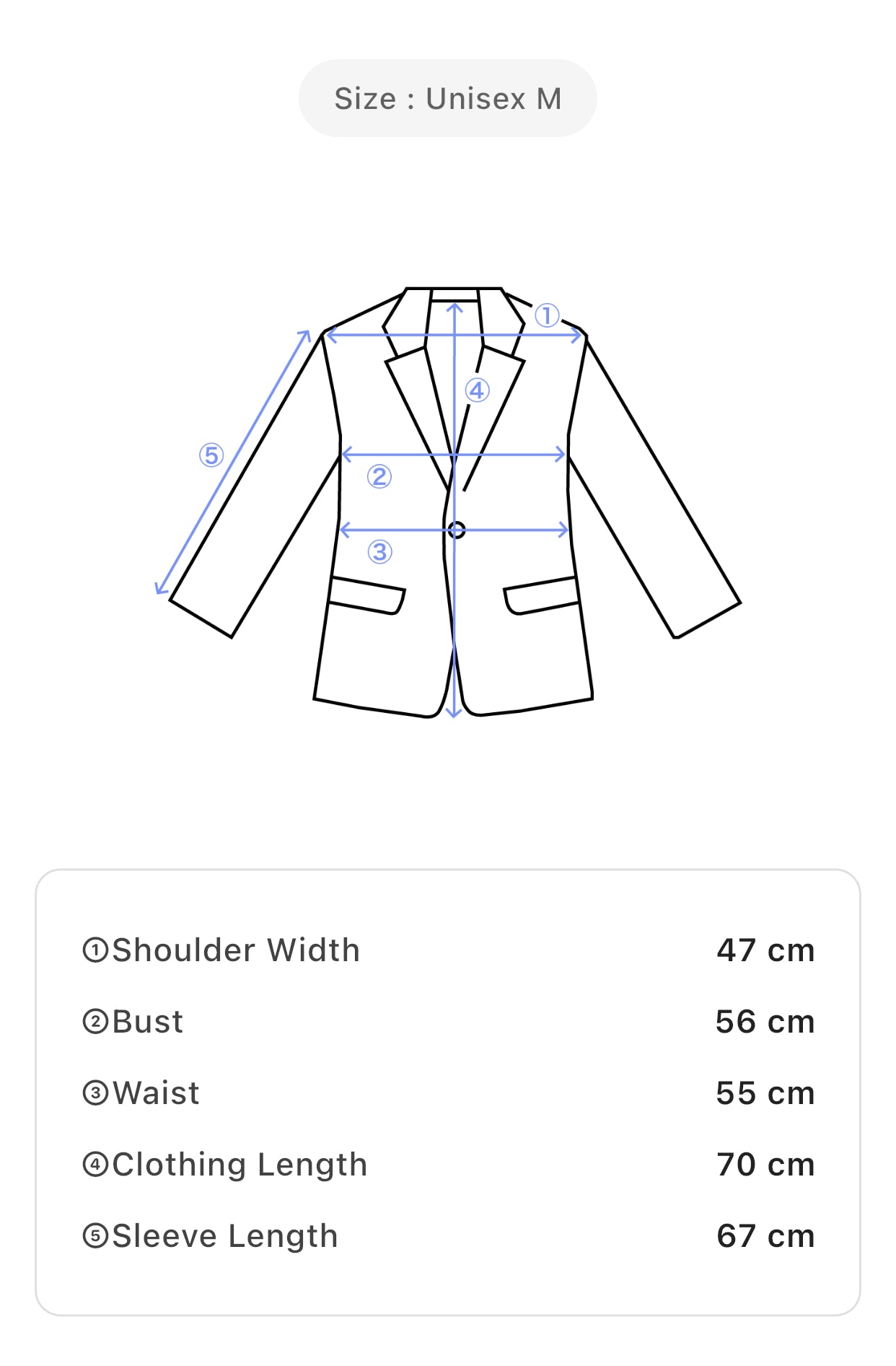 Size: Unisex M, Shoulder Width 47 cm, Bust 56 cm, Waist 55 cm, Clothing Length 70 cm, Sleeve Length 67 cm